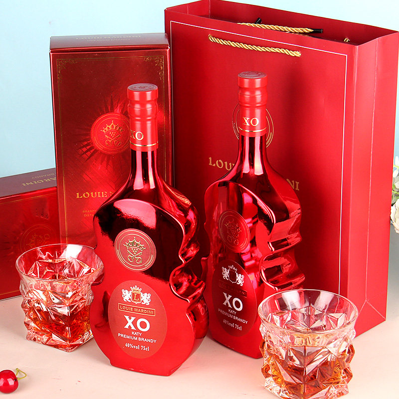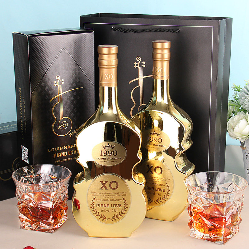 法国进口镀金小提琴XO白兰地礼盒装金色红色组合套装洋酒正品40度