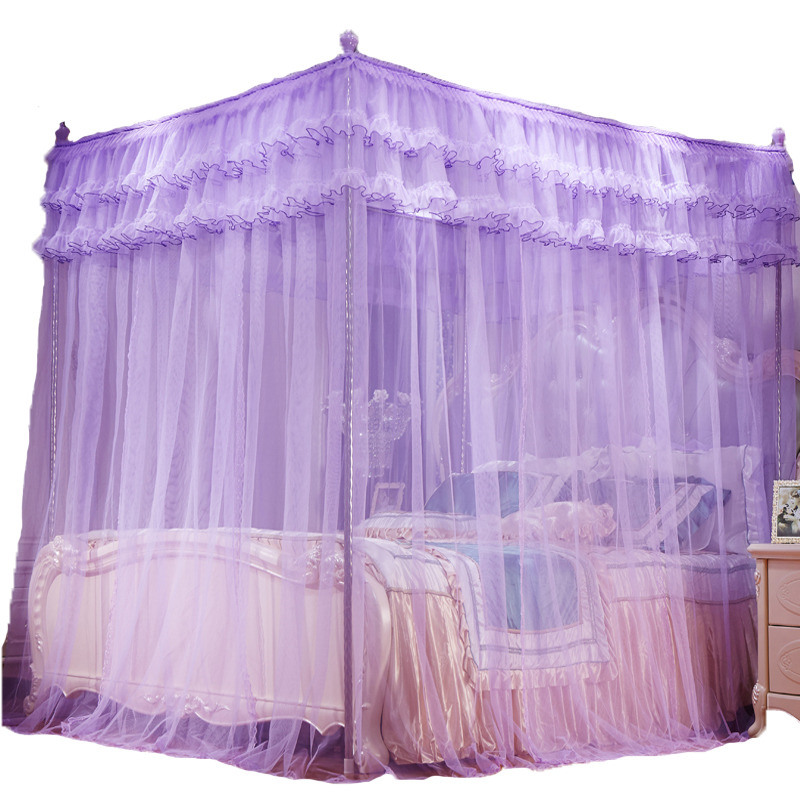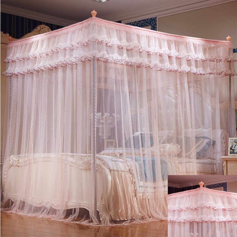 蚊帐1.5/1.8m床三开门落地不锈钢支架2.2m双人家用大红色婚庆蚊帐