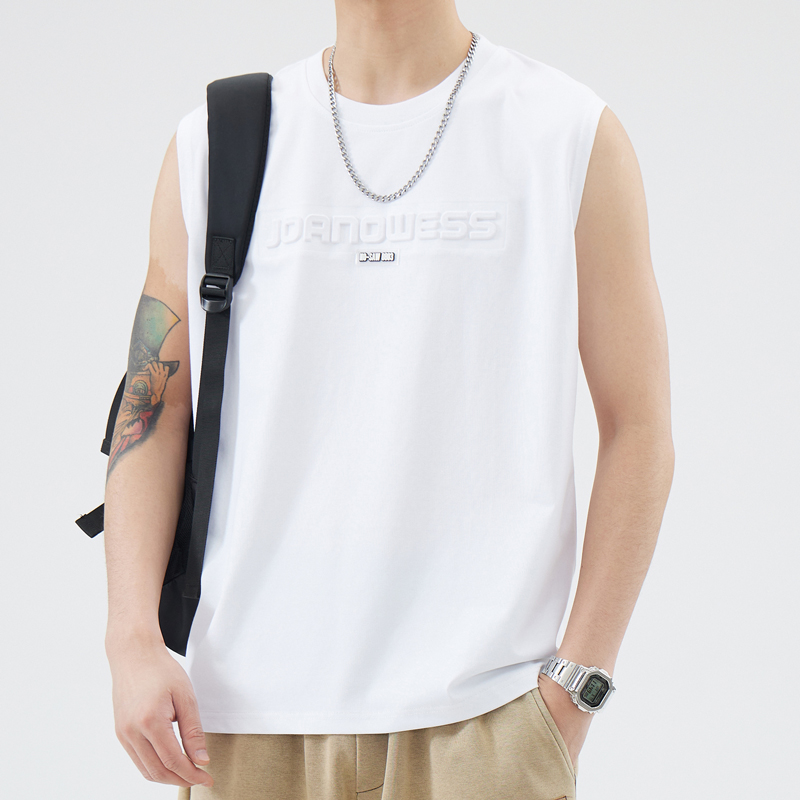 潮牌2025新款纯棉上衣运动健身篮球无袖背心男士夏季坎肩T恤圆领