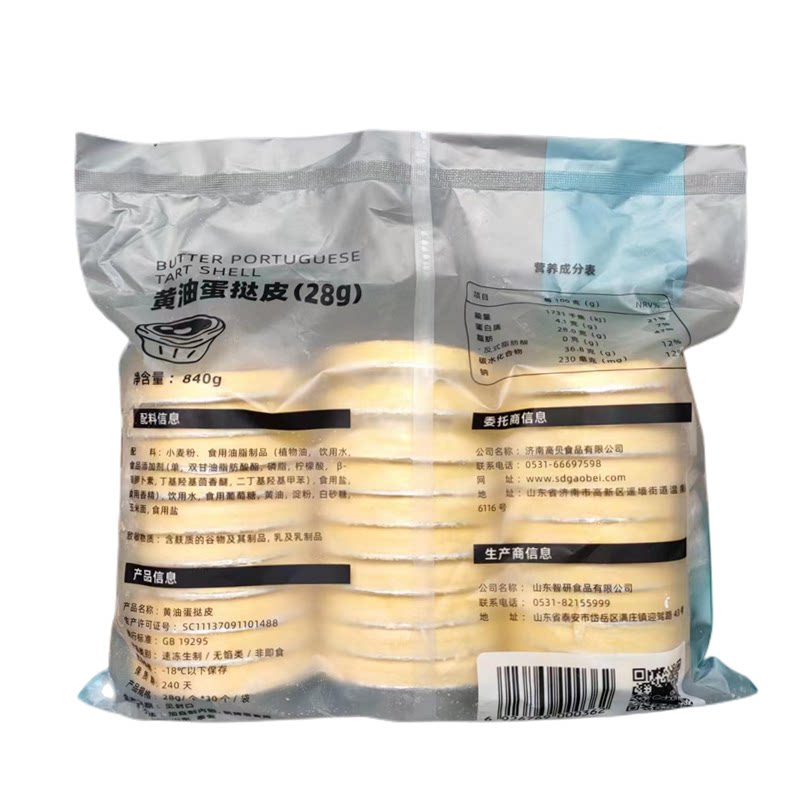 高贝黄油蛋挞皮28g*30个带锡纸托冷冻手工葡式蛋挞 家商烘焙原料