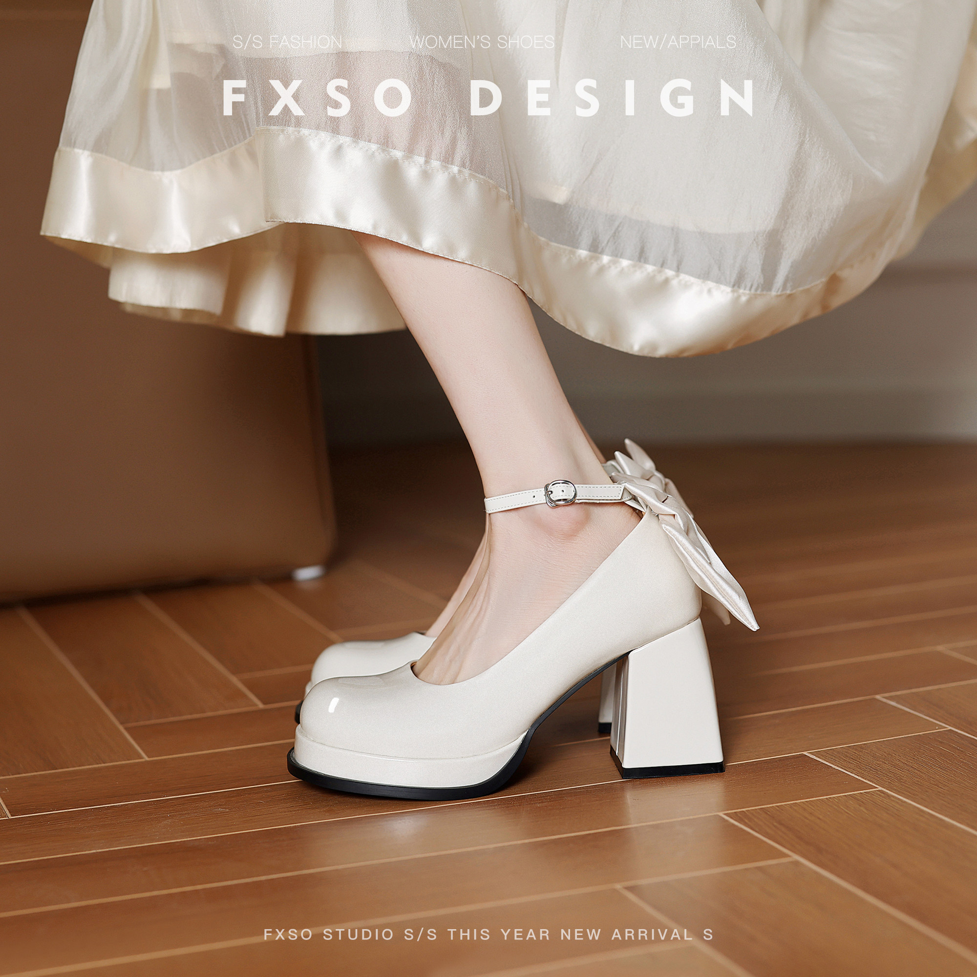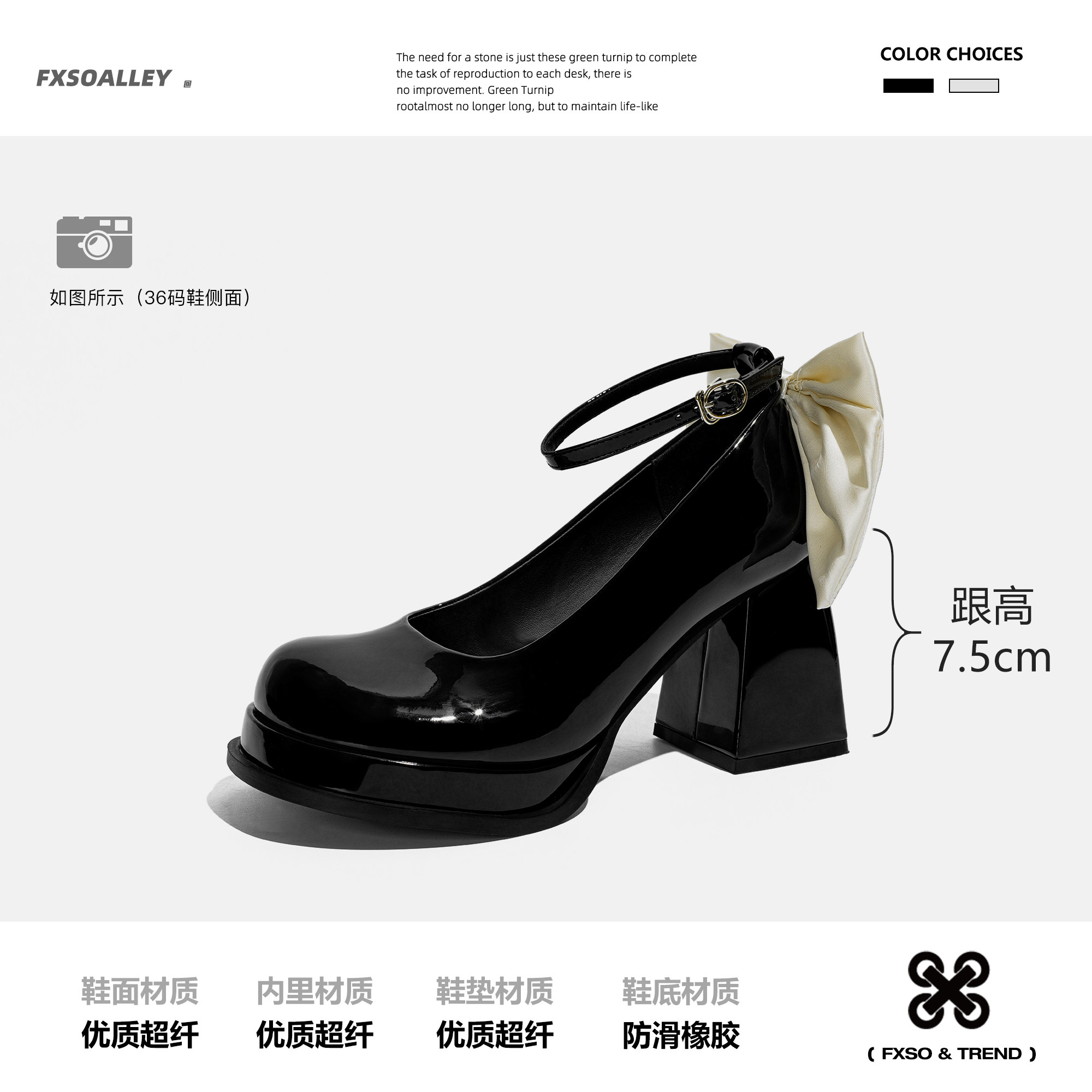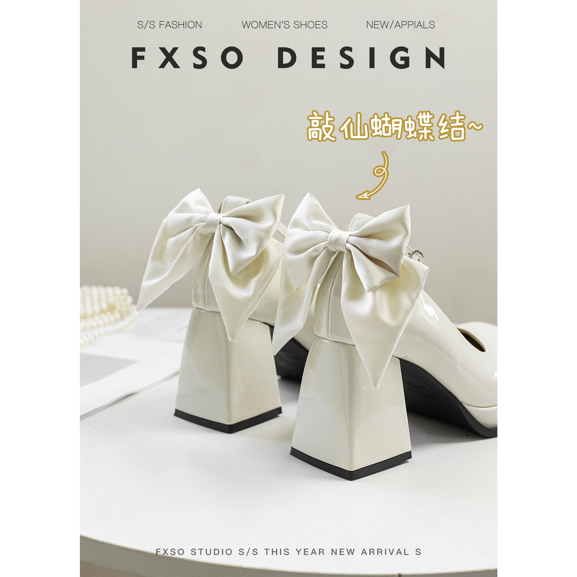 FXSO方巷玛丽珍高跟鞋女款2025秋季女鞋新款法式粗跟蝴蝶结单鞋子