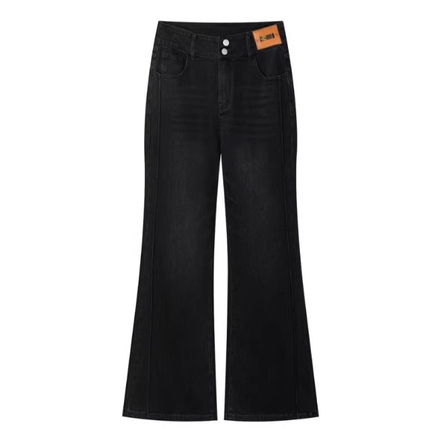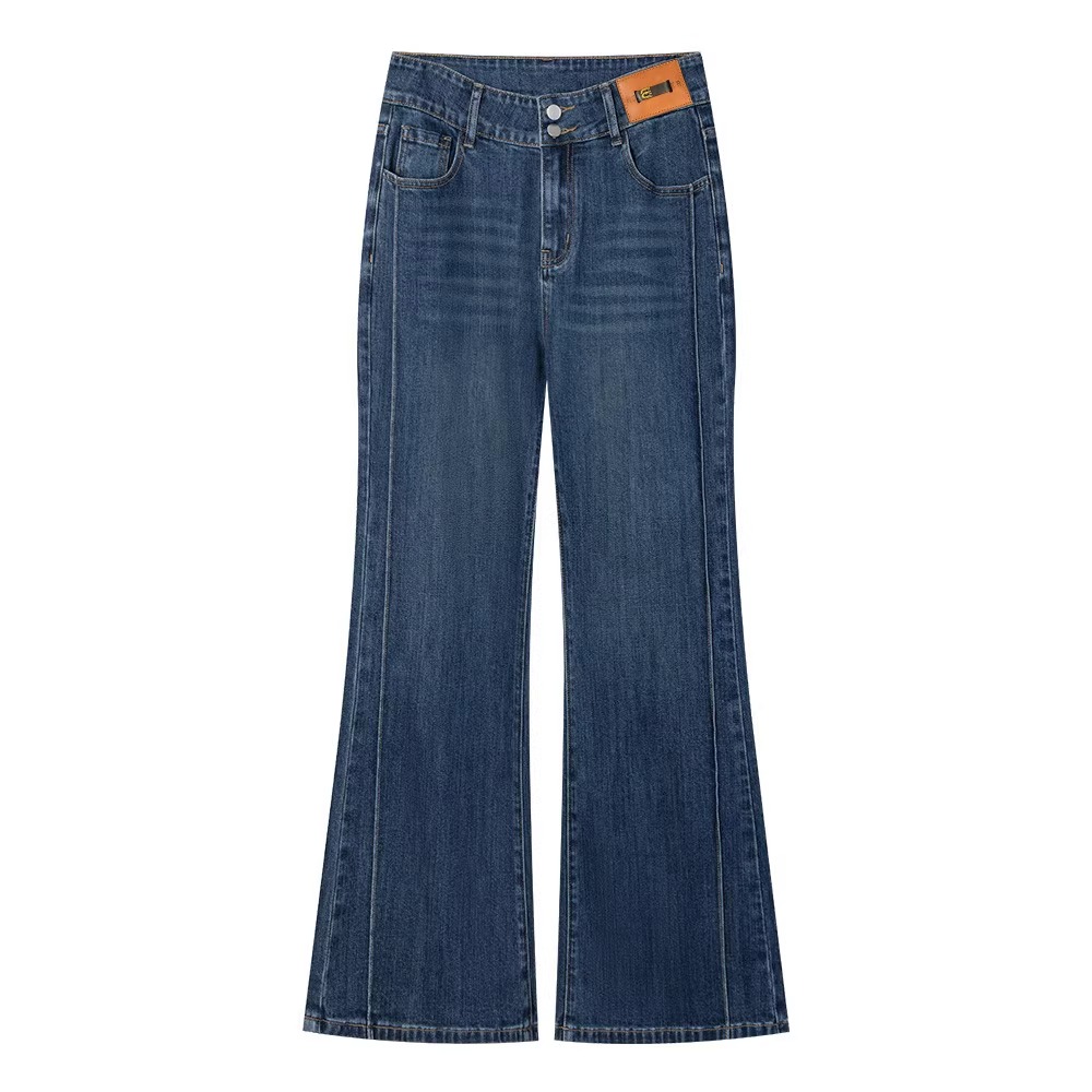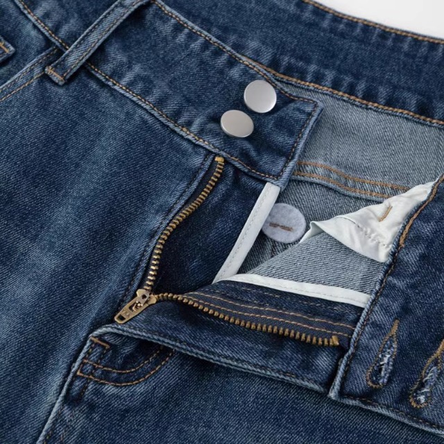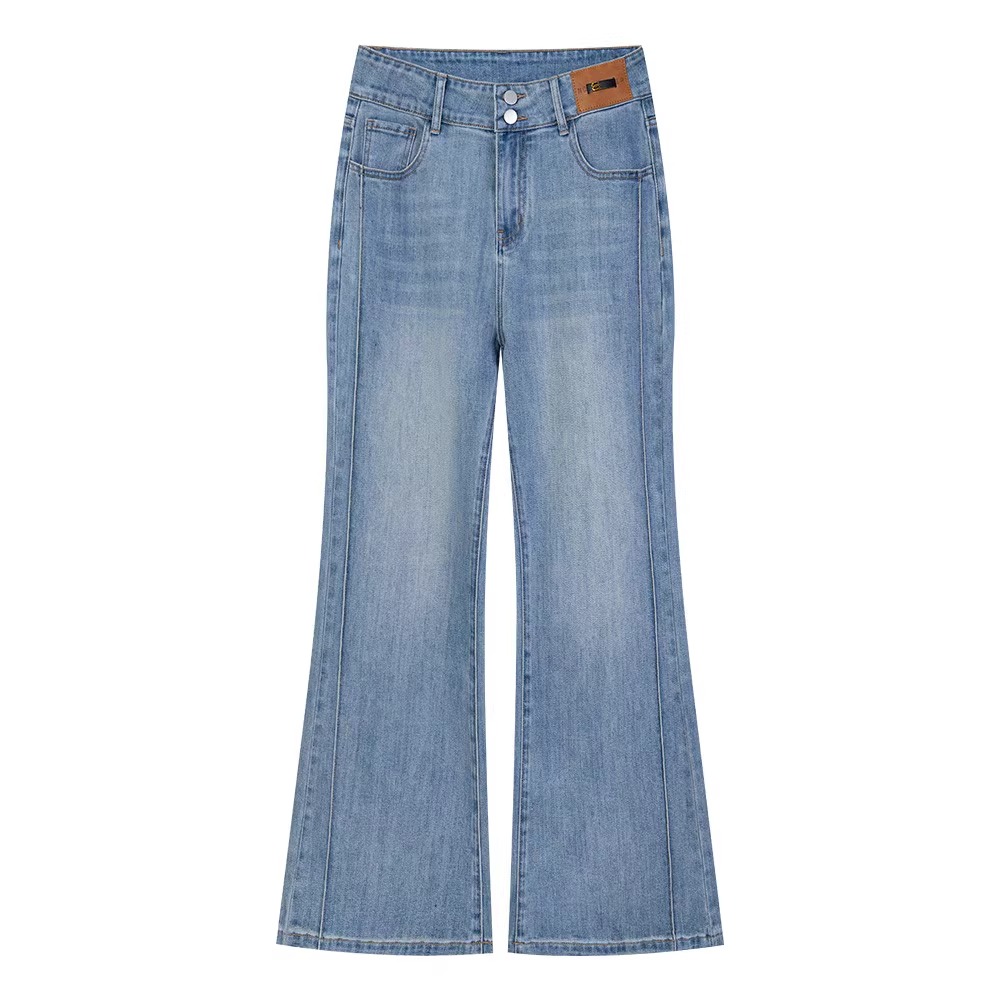 微喇双排扣牛仔裤女夏高腰显瘦直筒胖mm宽松窄版阔腿裤KX33227