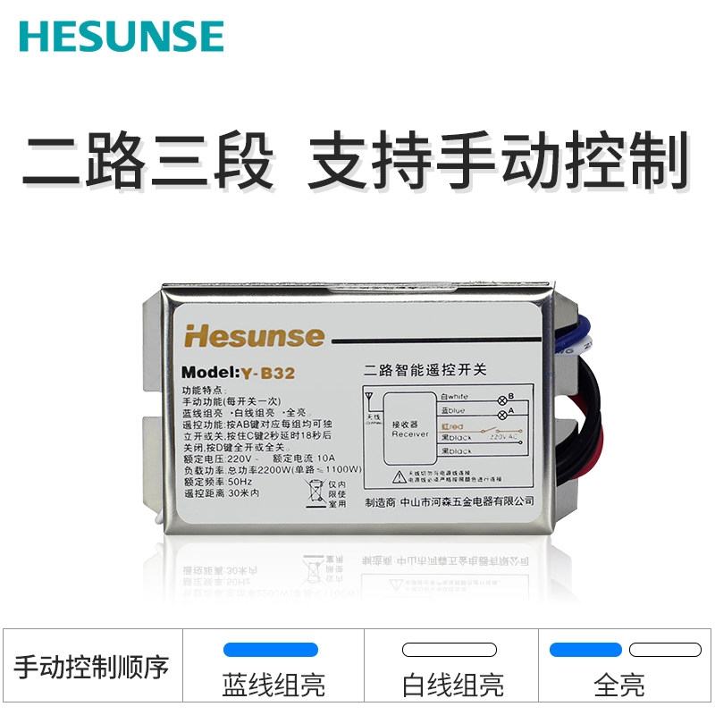 河森二路无线模块遥控开关220V多路智能分段器LED灯具远程遥控器