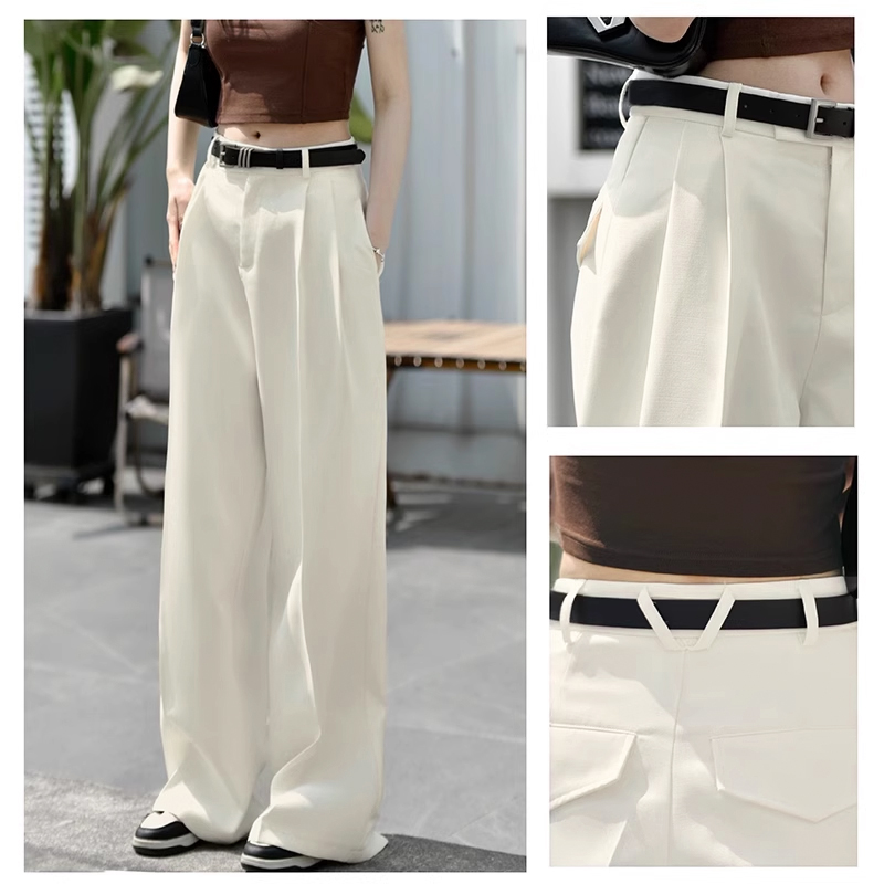 白色阔腿裤女高腰垂感秋季新款洋气休闲宽松直筒西装长裤拖地裤子