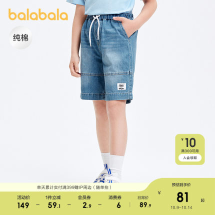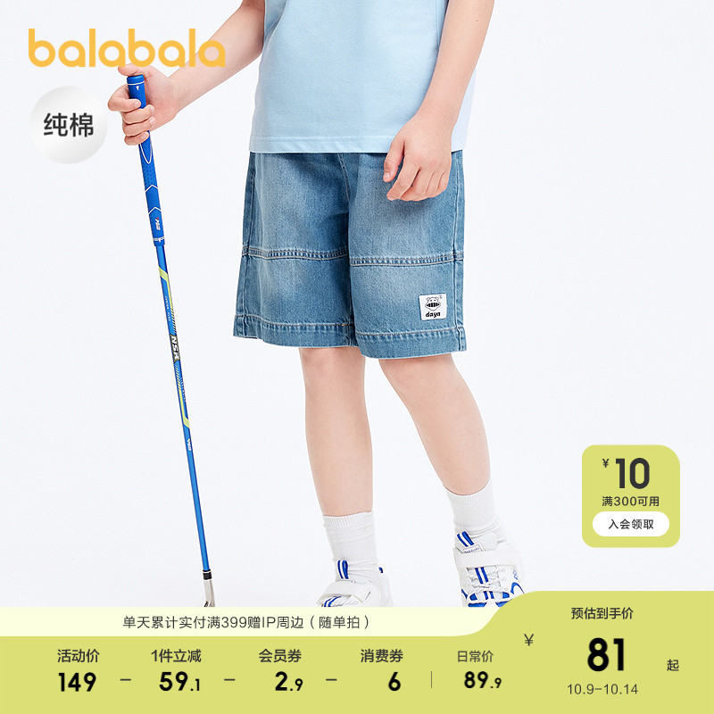 巴拉巴拉童装儿童裤子男大童牛仔短裤夏装复古纯棉织唛五分中裤潮