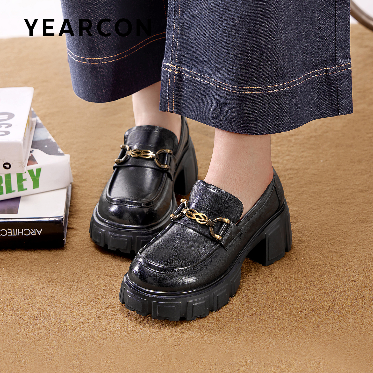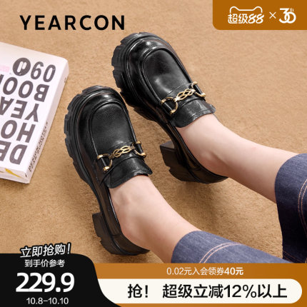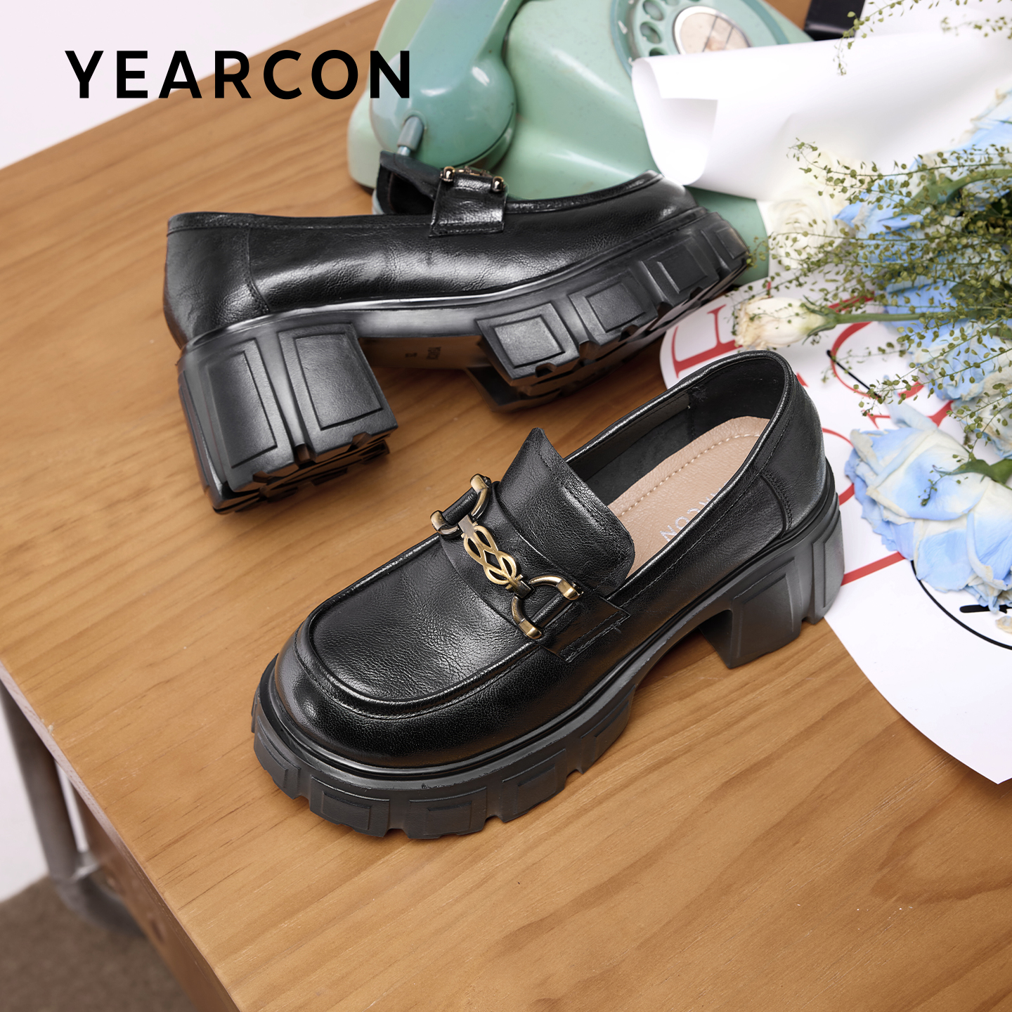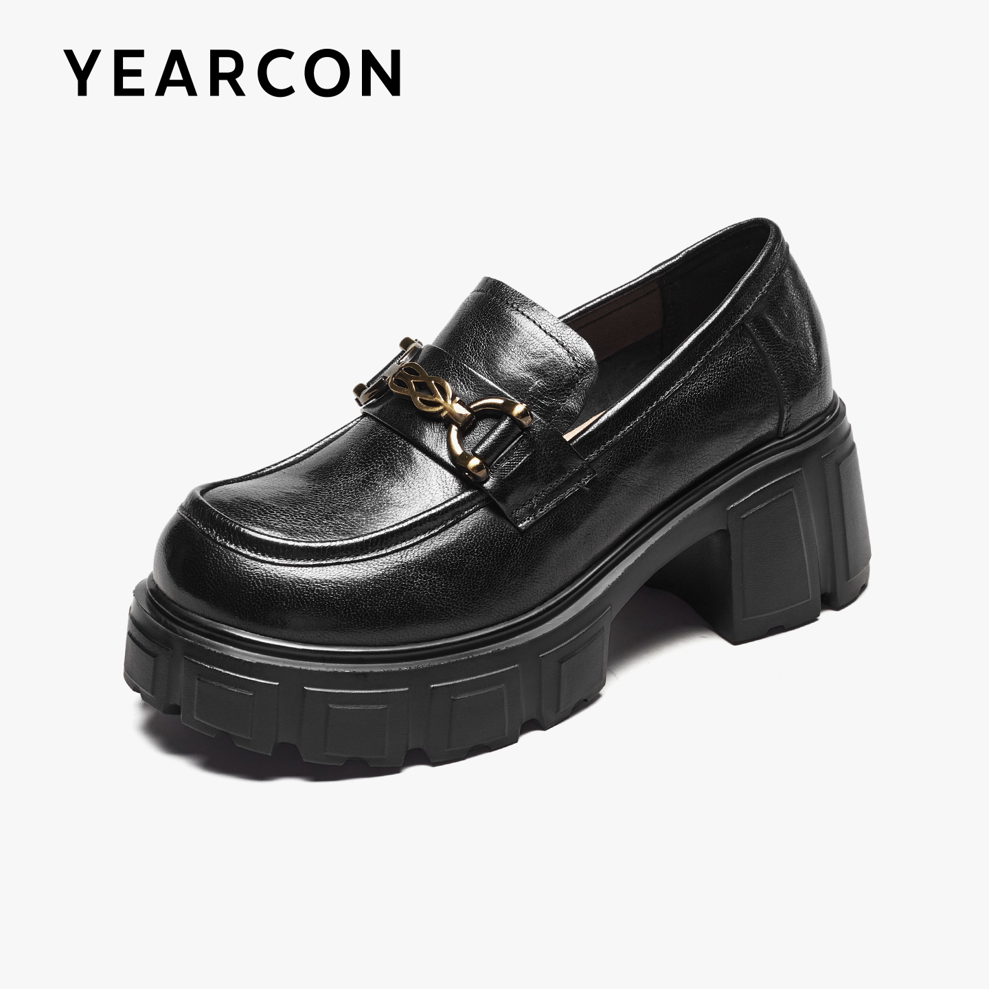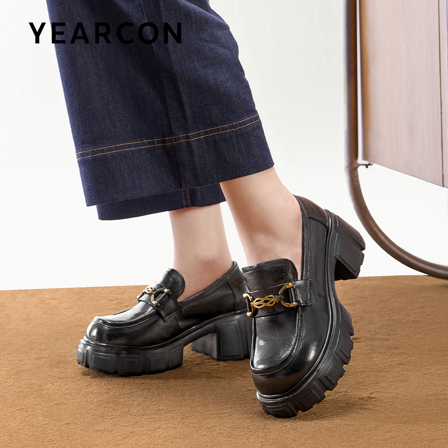 意尔康真皮乐福鞋女2025新款秋季复古英伦风小皮鞋小个子增高单鞋