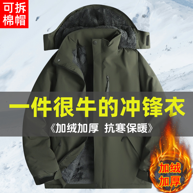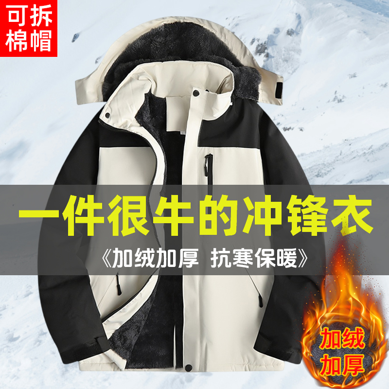 加绒加厚冲锋外套男士秋冬季2025新款三防户外工装夹克防水防风衣
