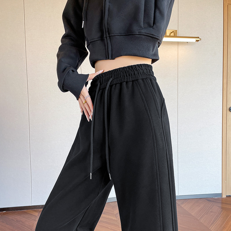 大码拼接运动裤女2025早春胖mm宽松显瘦直筒休闲裤小个子阔腿卫裤