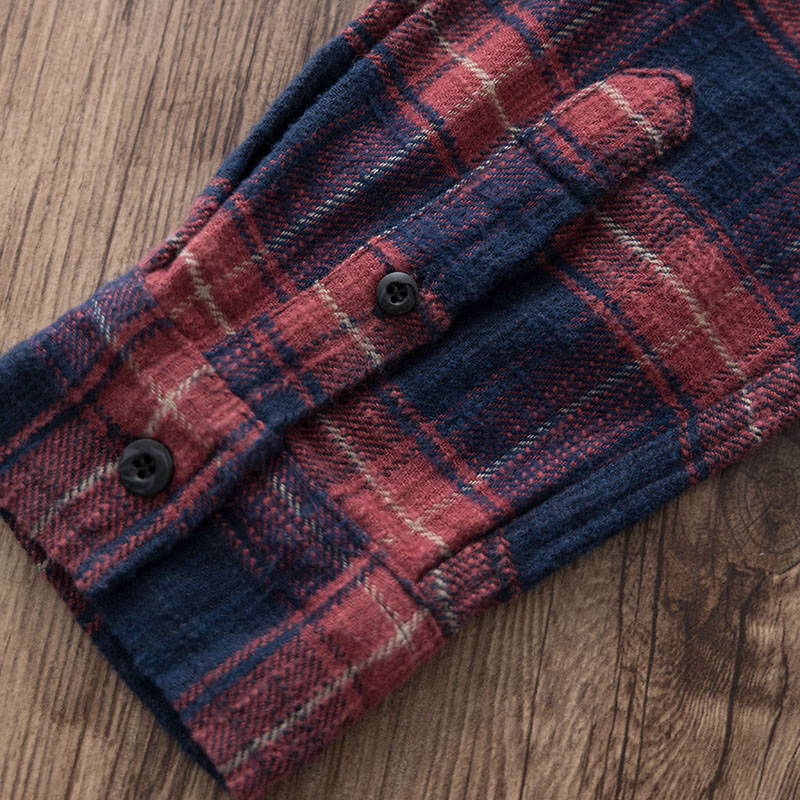 阿美咔叽长袖磨毛格子衬衫