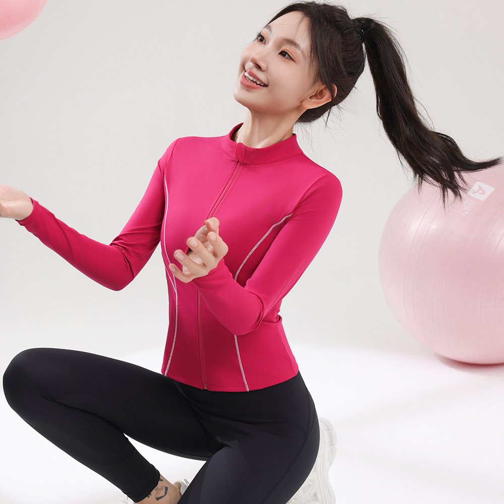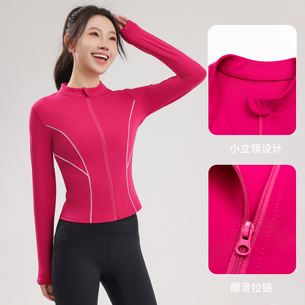 网红速干健身服女瑜伽外套专业户外骑行跑步上衣短款外套显瘦长袖