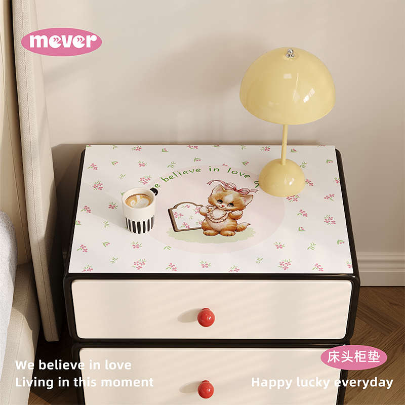 法式小兔格子床头柜垫皮革垫桌布防水防油防烫盖布高级感防尘罩套