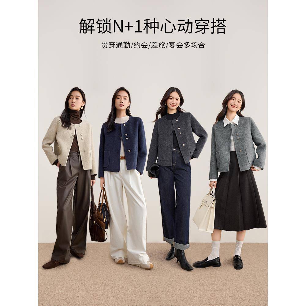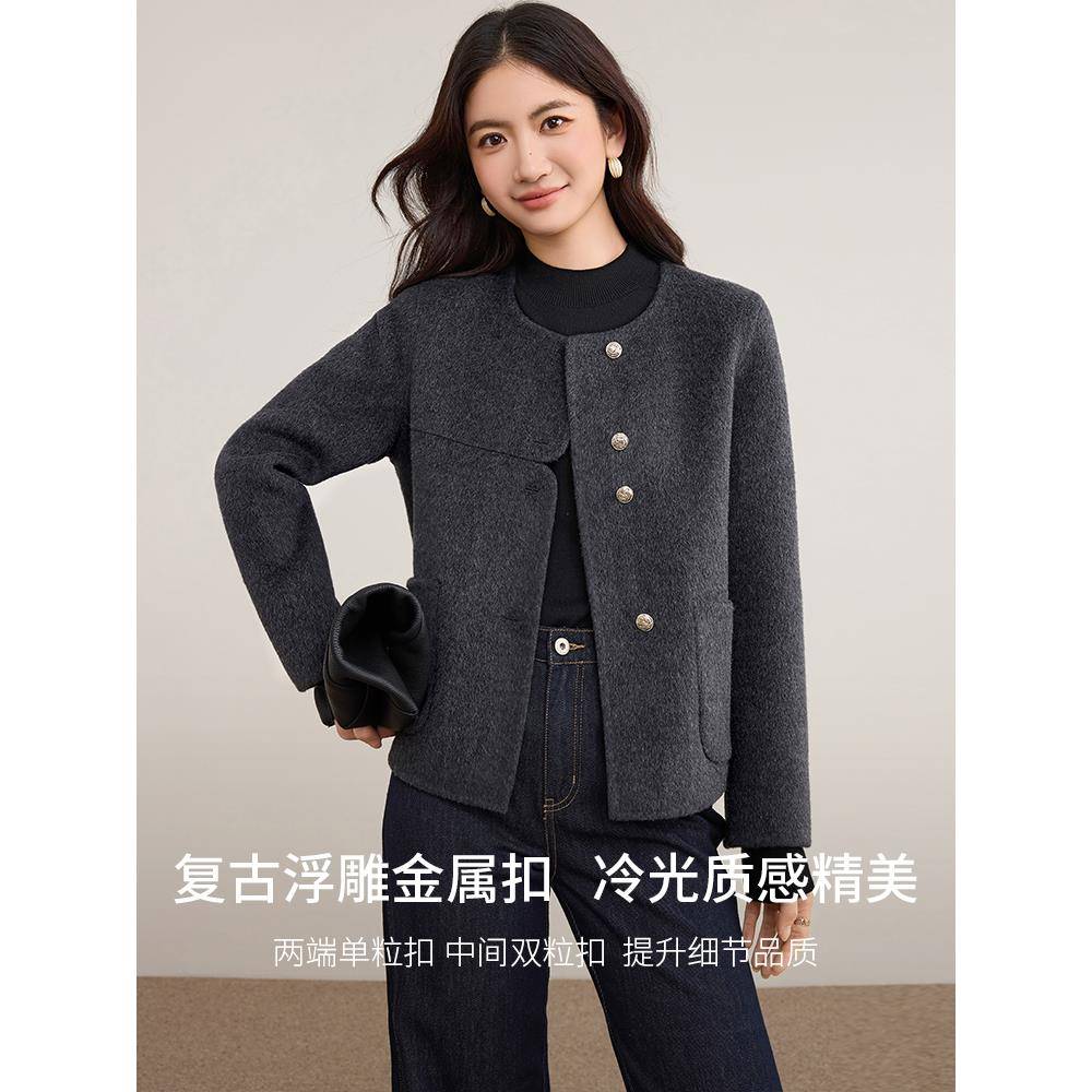 【绵羊毛】双面呢外套女冬季圆领保暖小个子短款小香风厚毛呢大衣