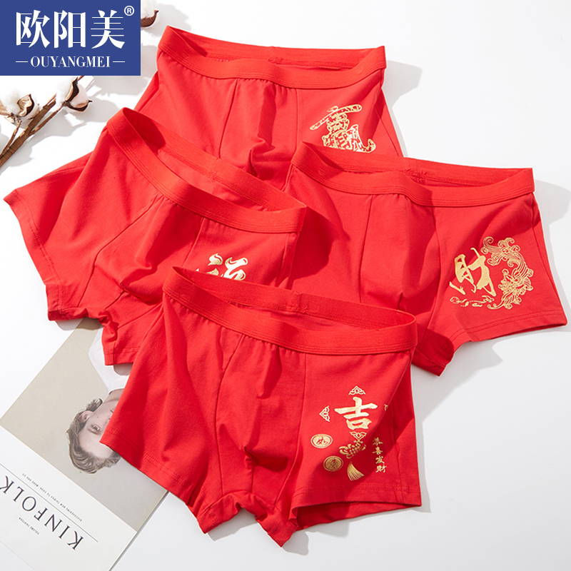 男士内裤男纯棉平角裤头男款冬季透气大码青少年男生红色四角短裤