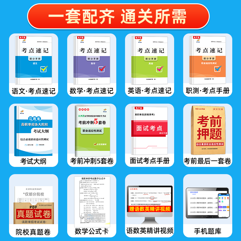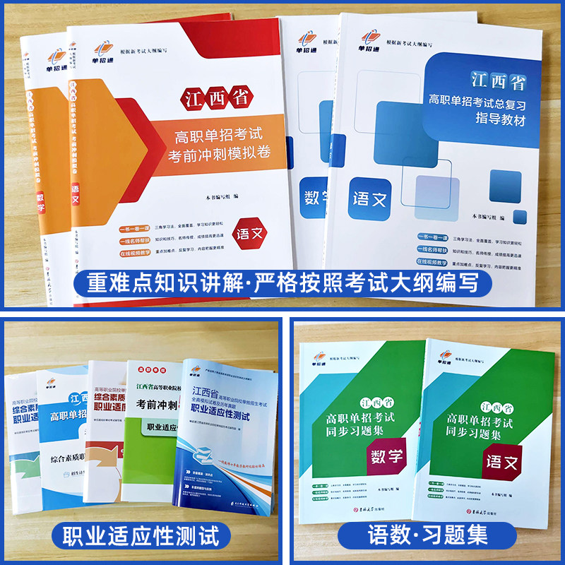 备考2026江西单招考试复习资料语数英综合素质教材江西省高职单招考试真题试卷模拟职业适应性测试技能春季招生历年真题模拟试卷