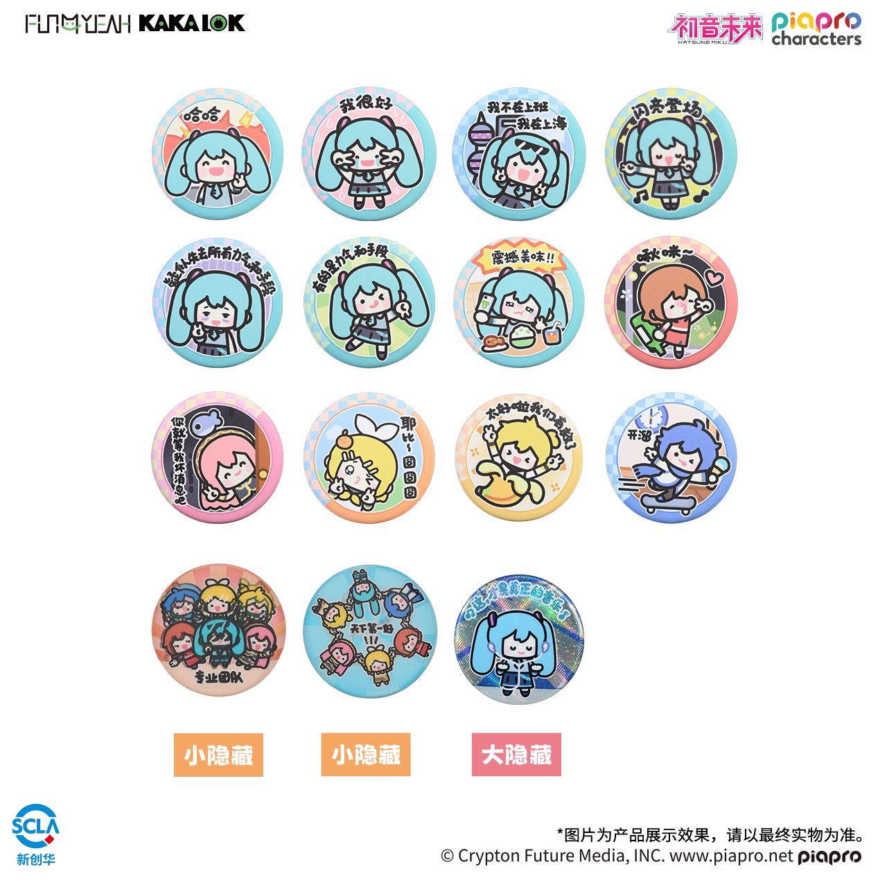 FUN4YEAH 初音未来系列 放肆耶表情包 盲抽马口铁徽章 药瓶挂件