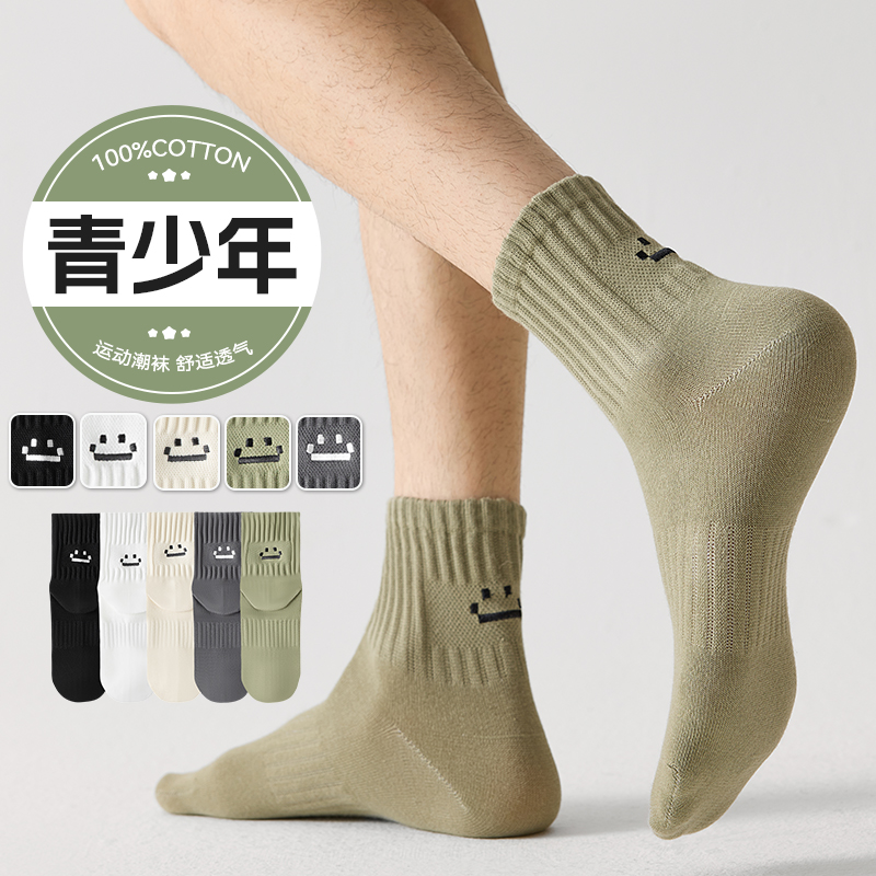 袜子男纯棉防臭7a抗菌运动袜秋春青少年学生大码中筒100%新疆棉袜