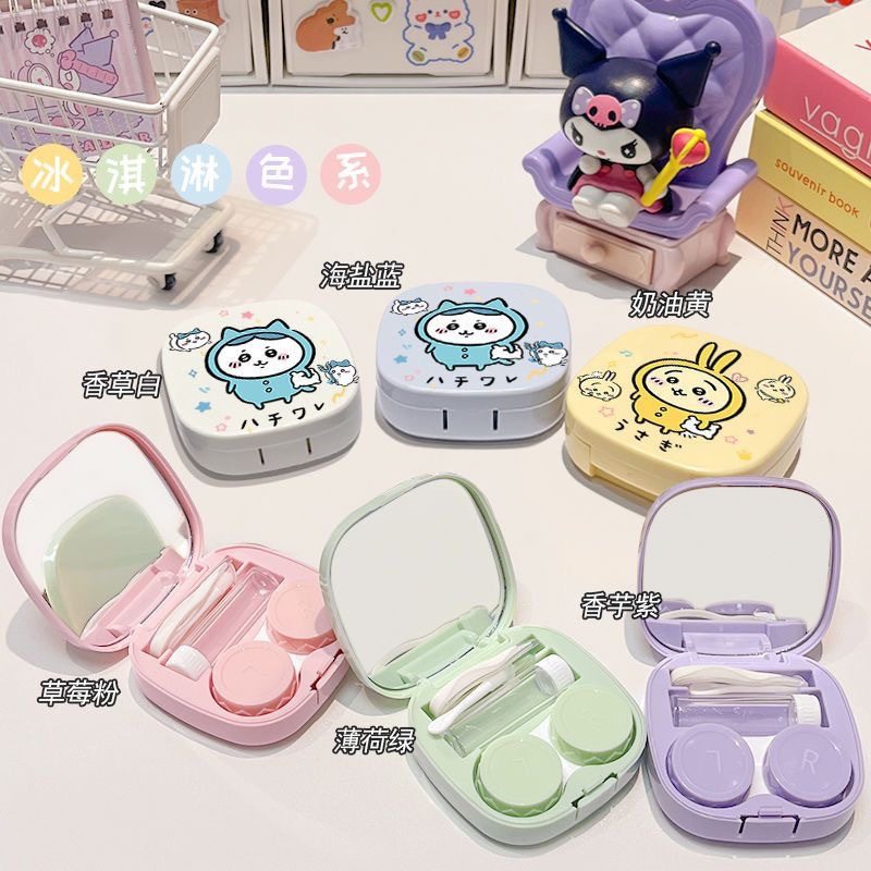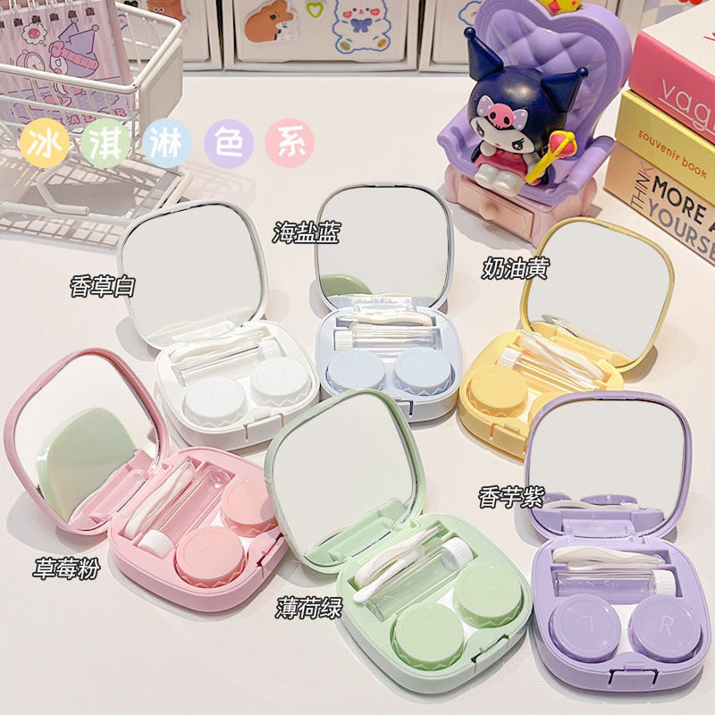 可爱卡通美瞳盒便携收纳伴侣带镜子摘取工具隐形眼镜护理收纳盒