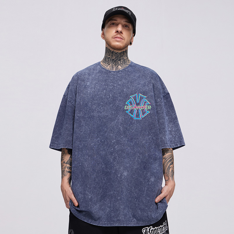 oversize美式重磅潮牌胖子男加肥加大码宽松水洗做旧复古短袖T恤