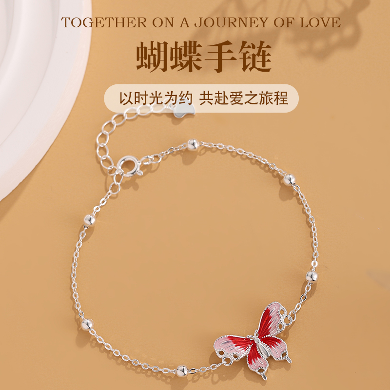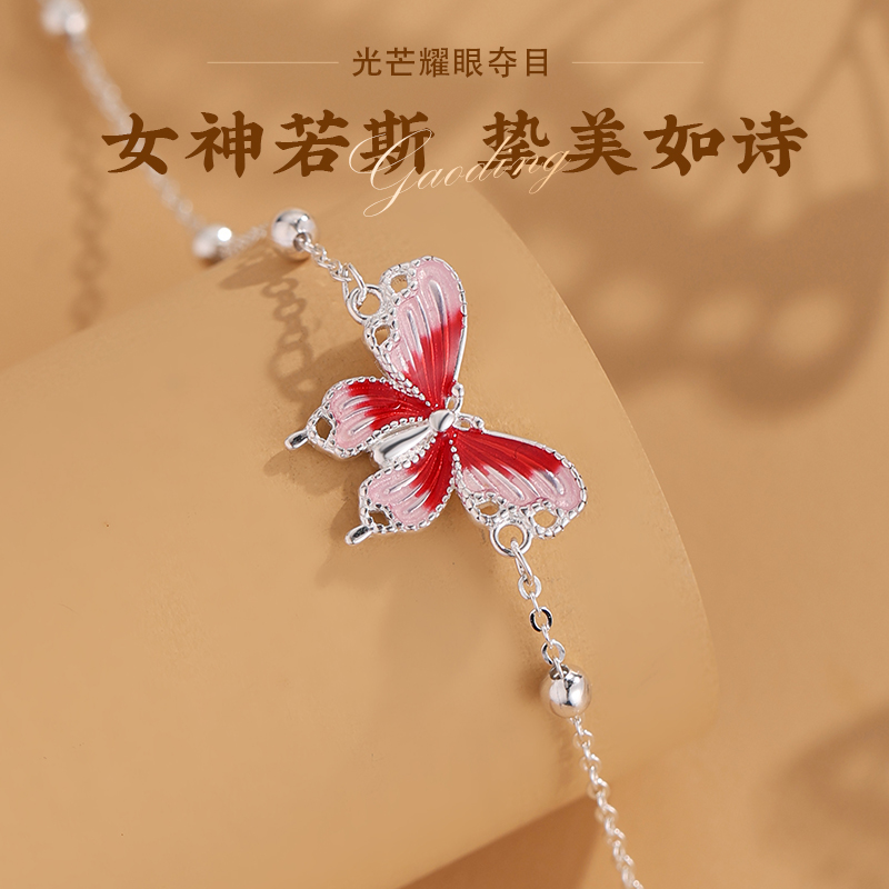 【志同珠宝】足银蝴蝶手链精工珐琅银饰吸睛小众日常穿搭甜美饰品