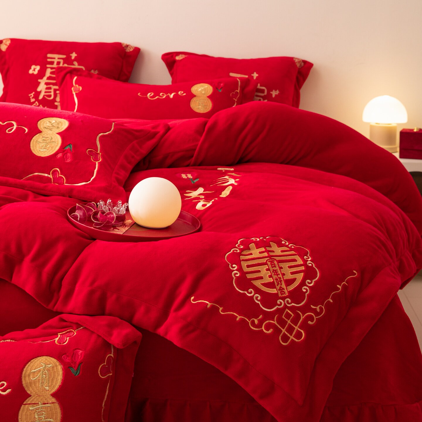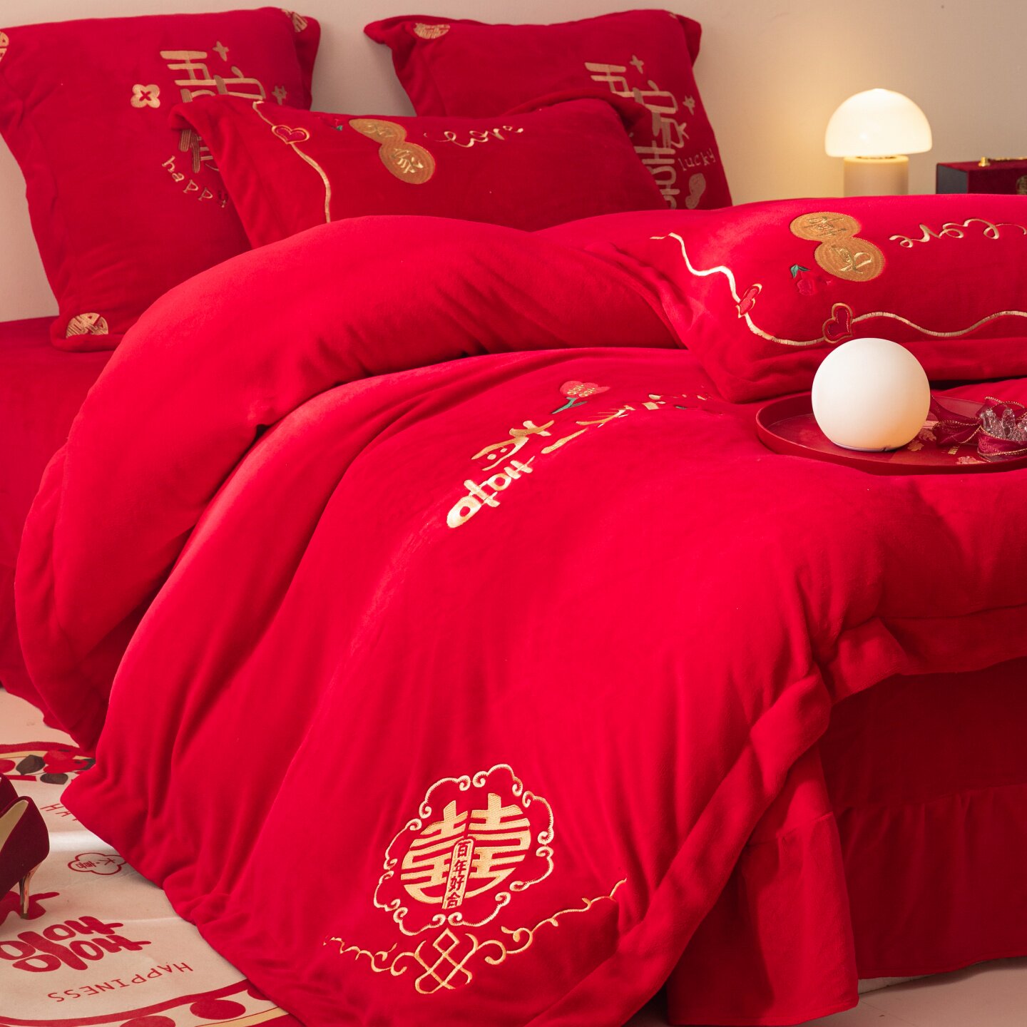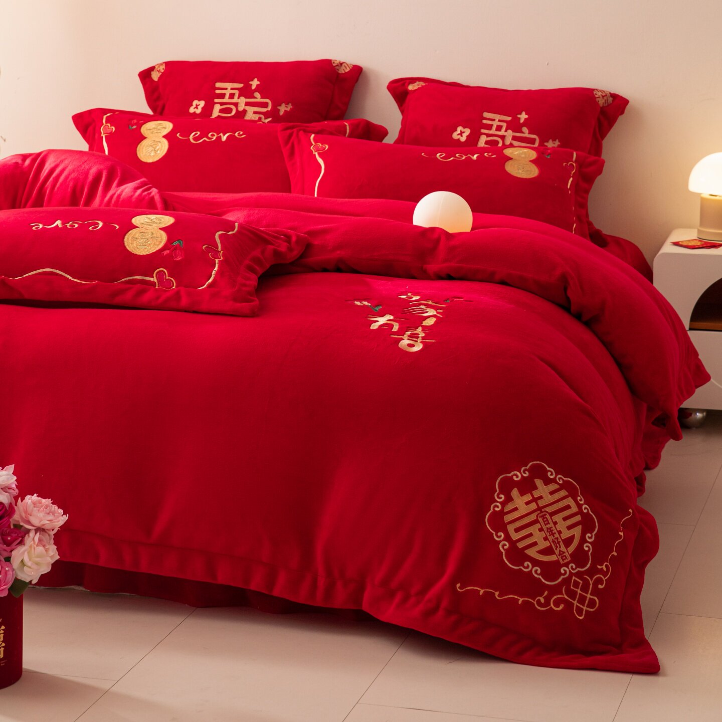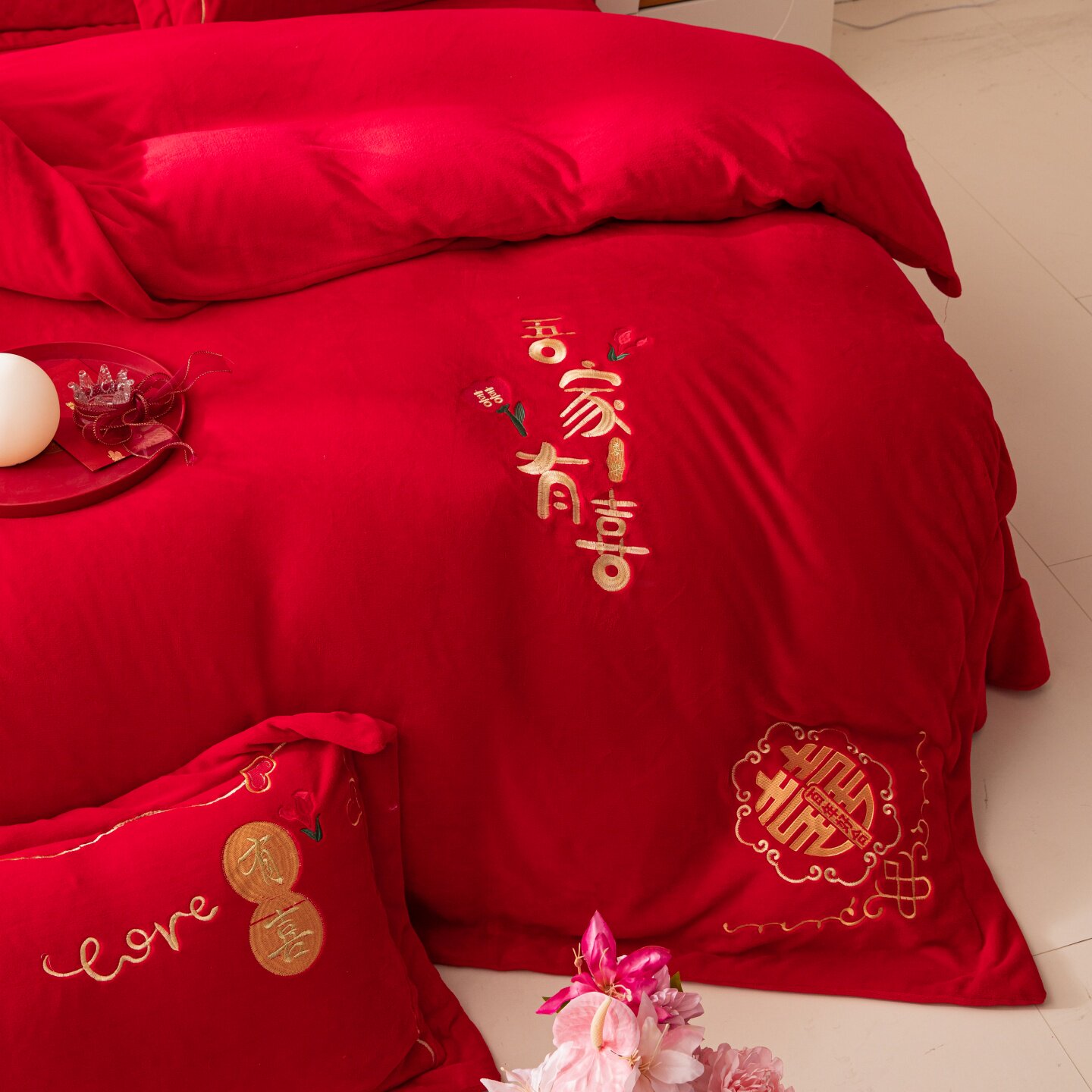 牛奶绒婚庆刺绣四件套