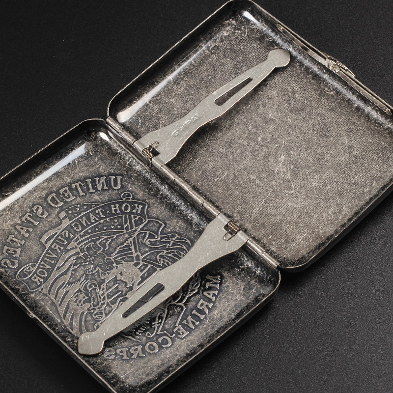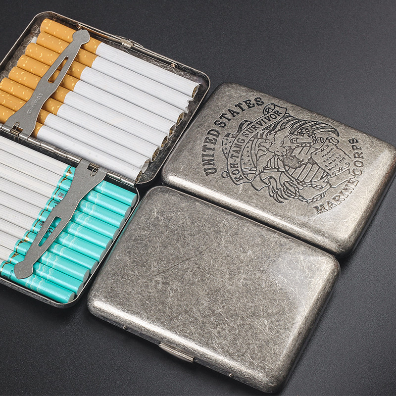 16/20支装金属烟盒复古男士便携香菸盒抗压翻盖古银色粗中支烟夹
