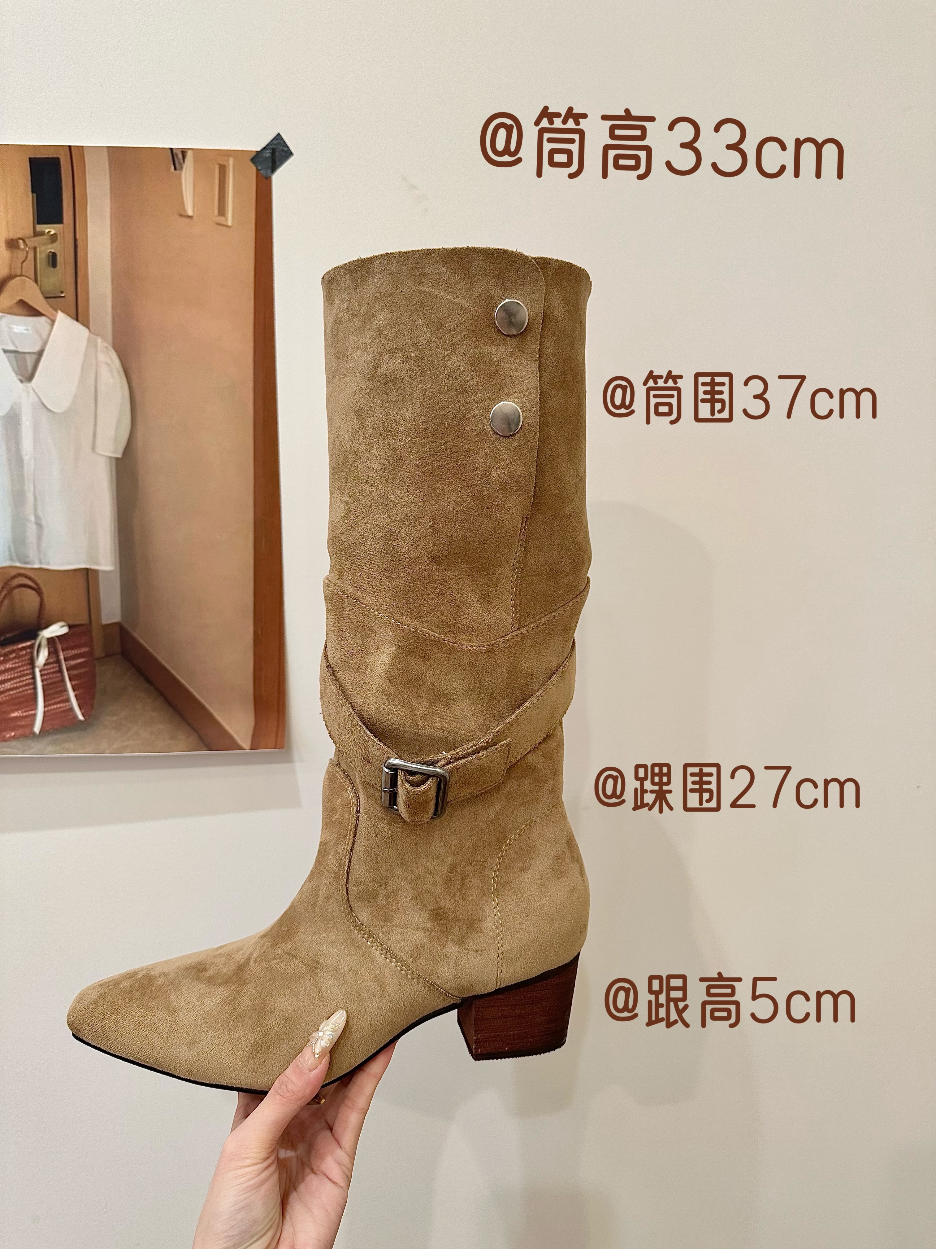 titing腿精氛围!一靴两穿辣妹绒面方头搭扣骑士靴女秋粗跟长筒靴