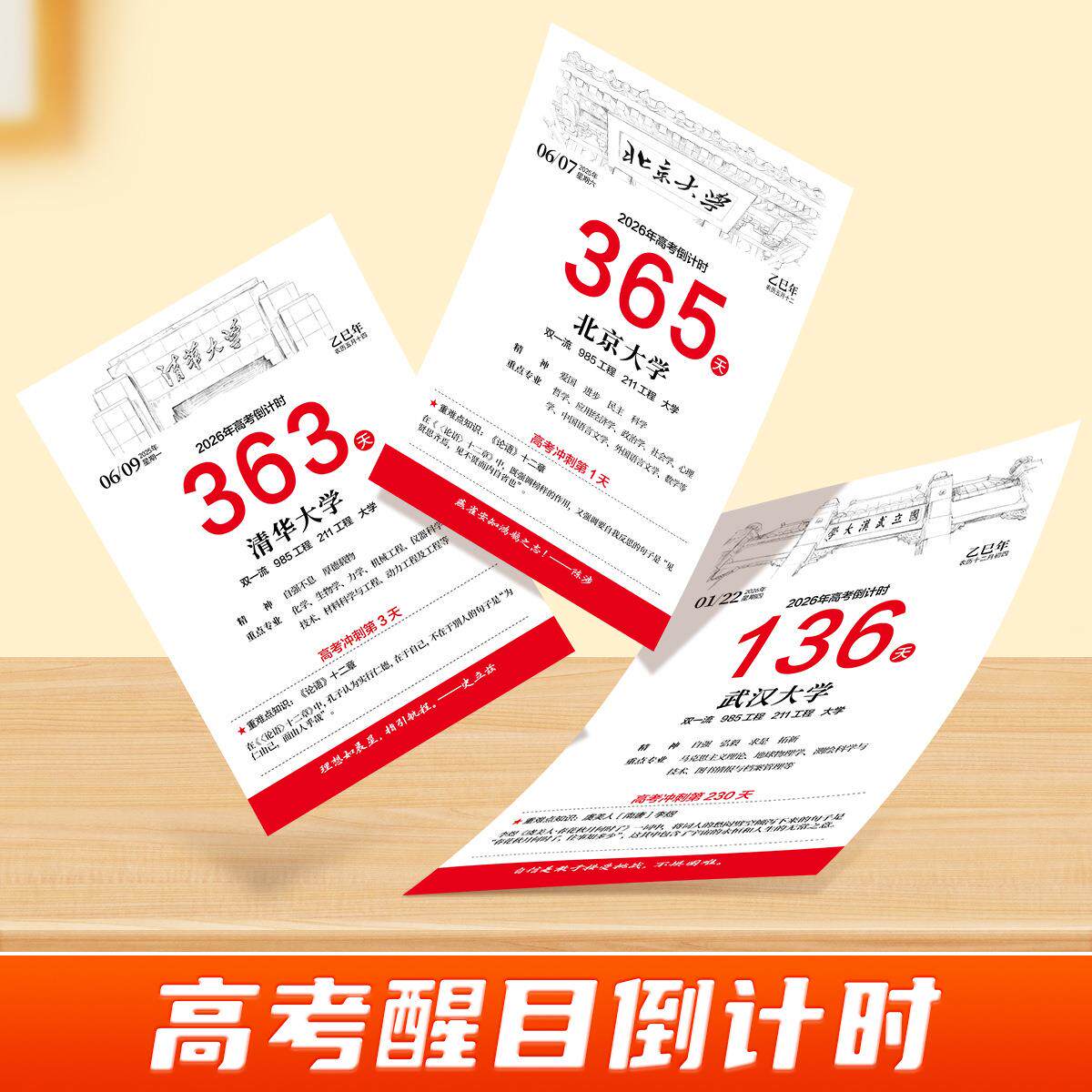 2026届高考倒计时日历高三365天自律励志打卡知识点桌面手撕台历