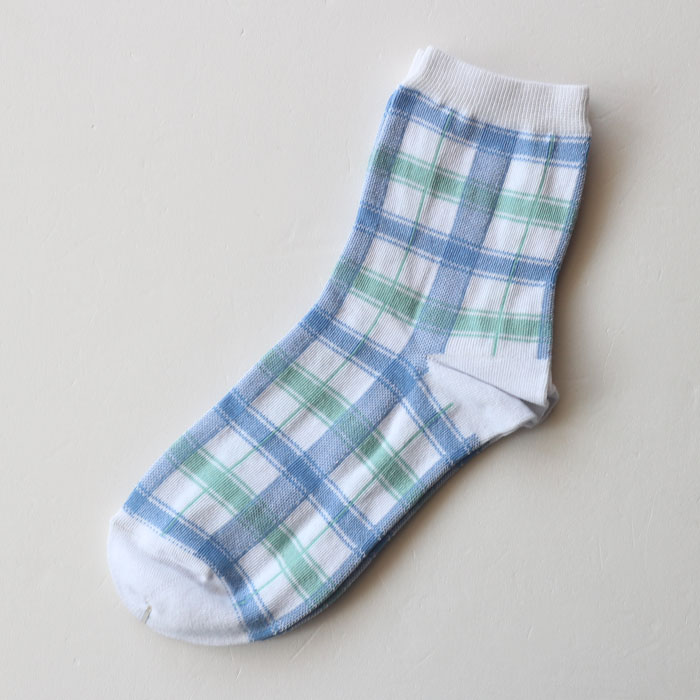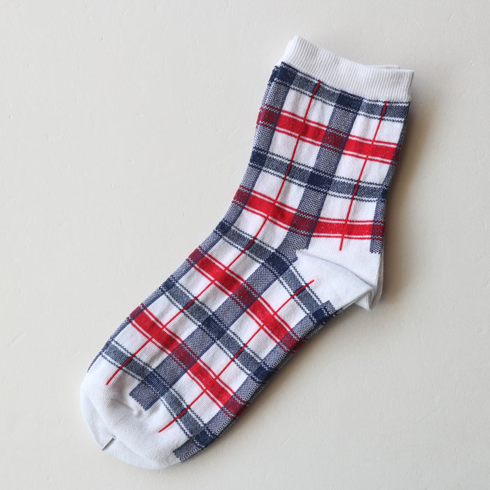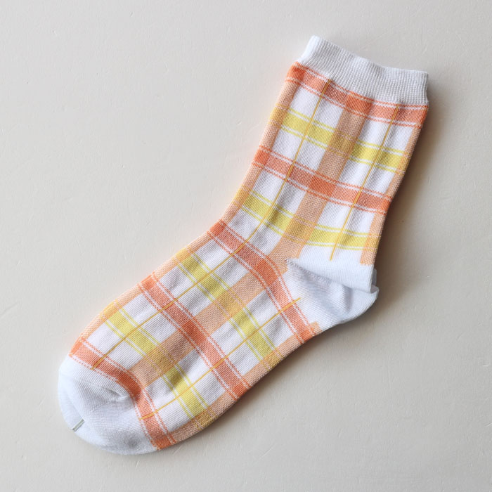 日单 彩色格子图案装饰女士速干袜子 中筒袜 3色