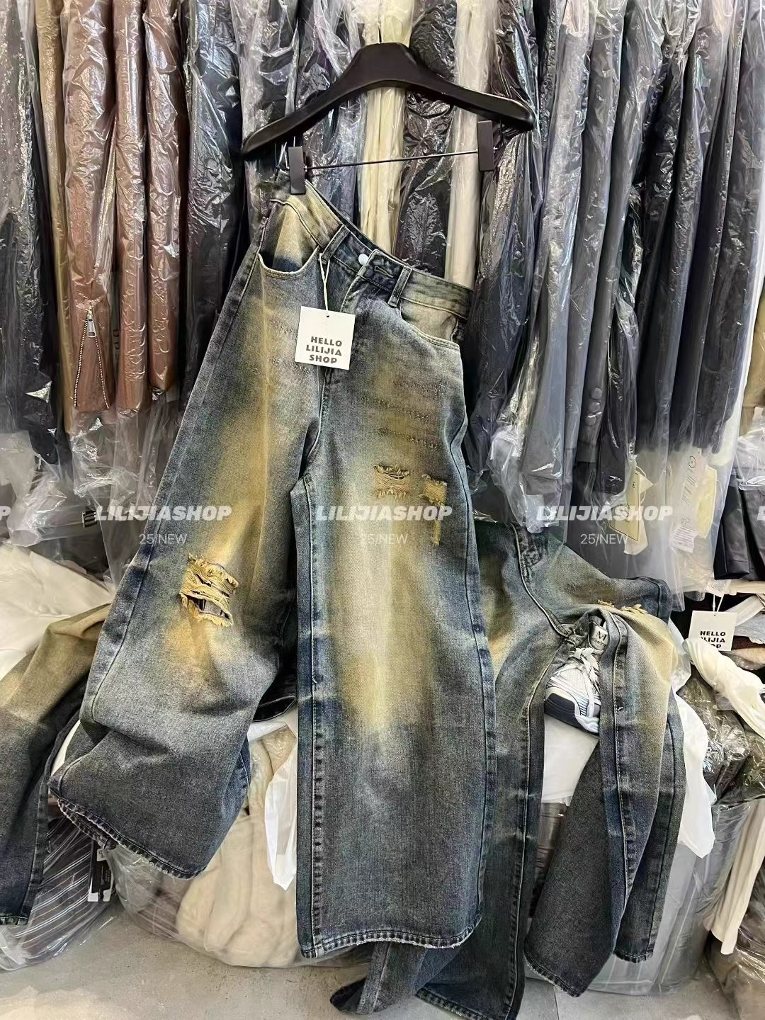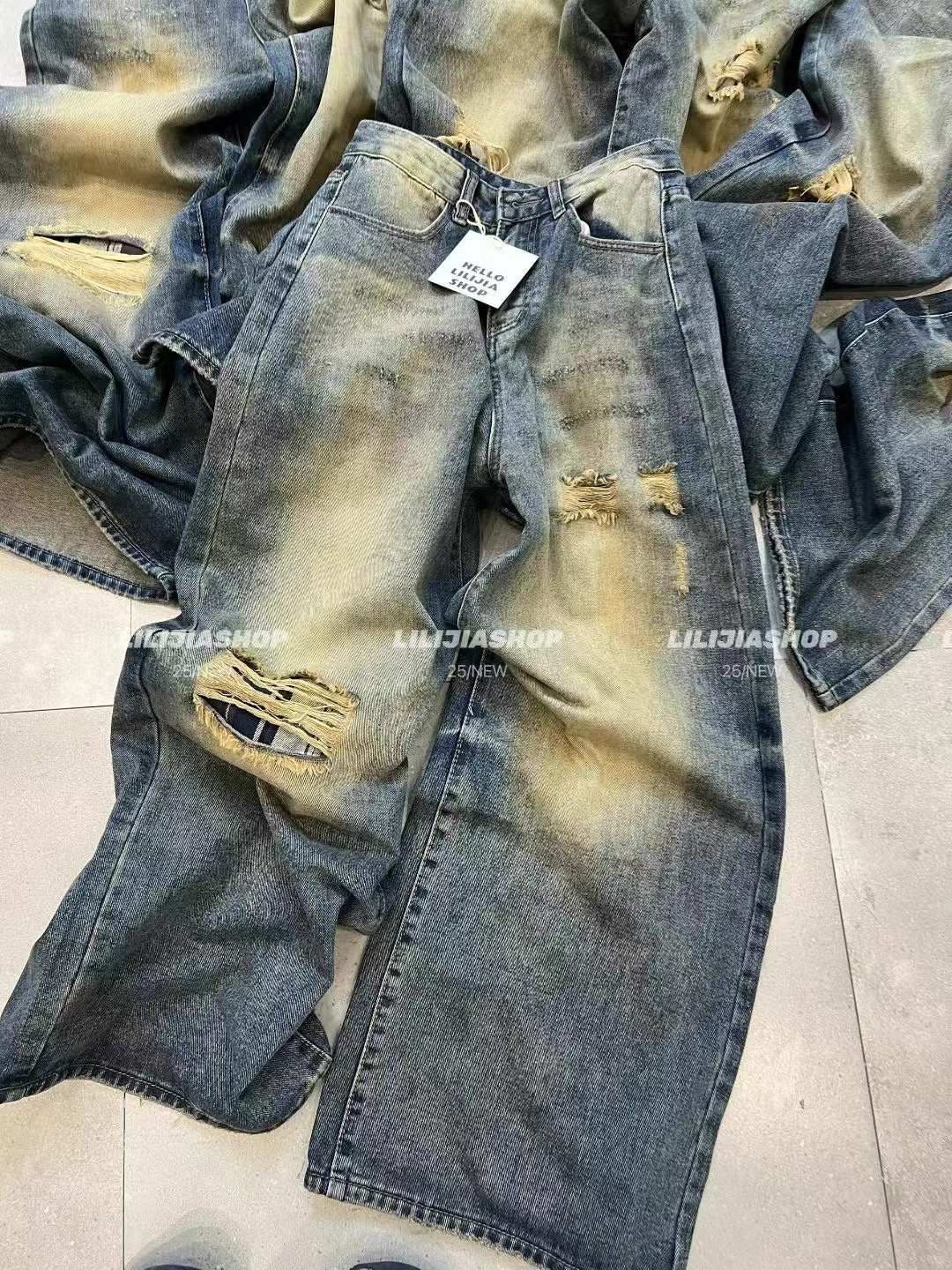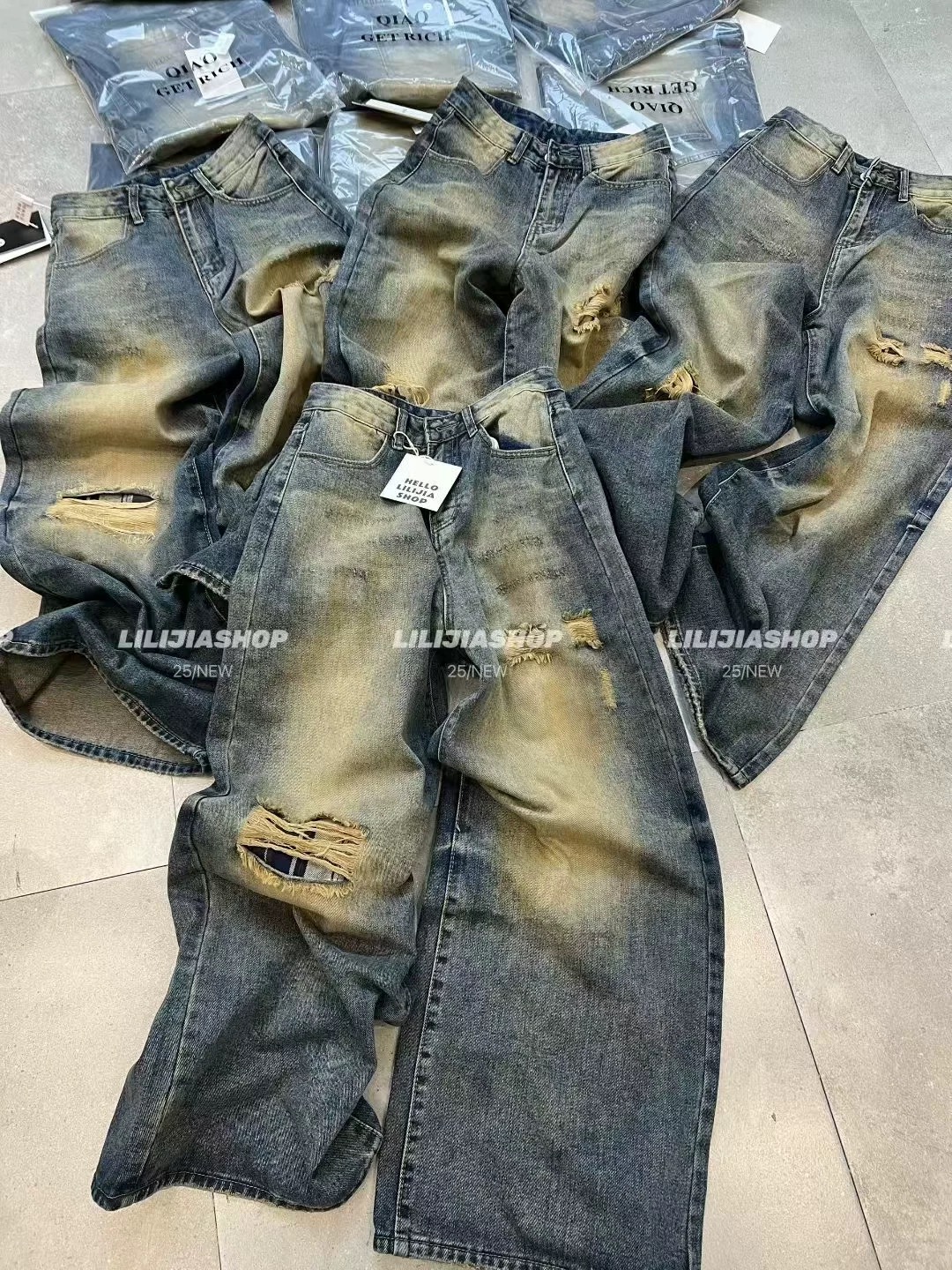 MH家 2025秋季新款韩版时尚百搭显瘦宽松休闲复古破洞牛仔裤女