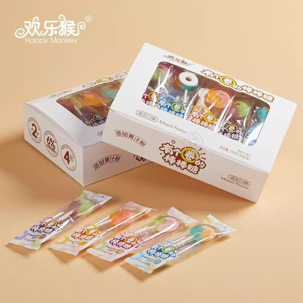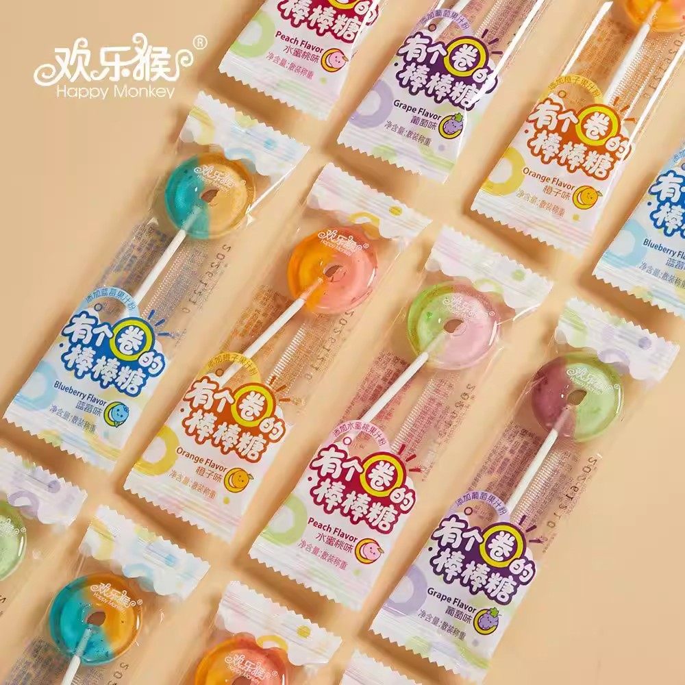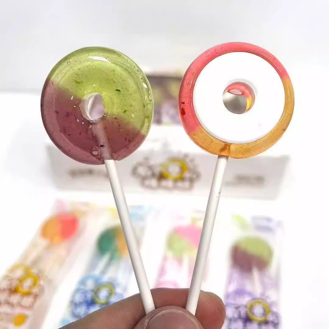 网红儿童解馋零食糖果幼儿园分享学生奖励有个圈的双色棒棒糖