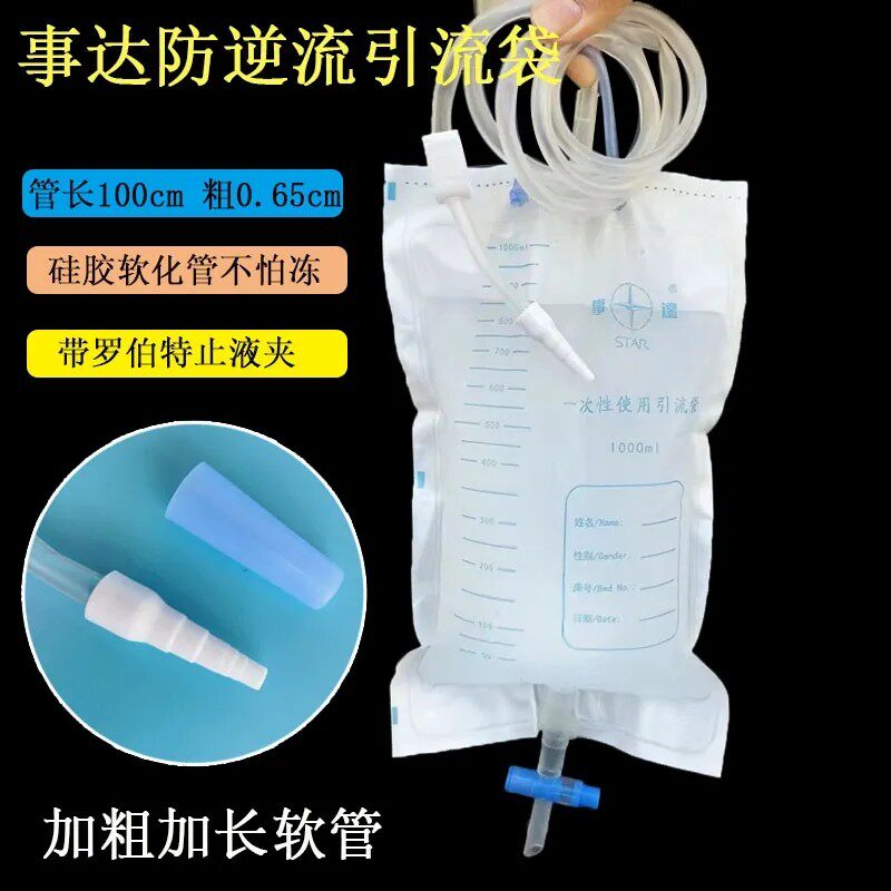 事达一次性使用防返流引流袋集尿防逆流1000ML加粗软管带止液夹
