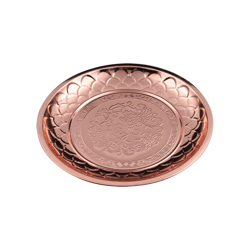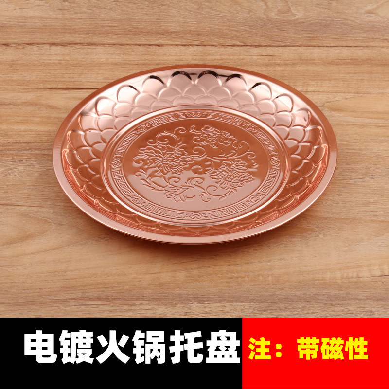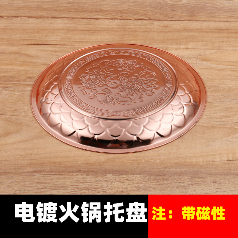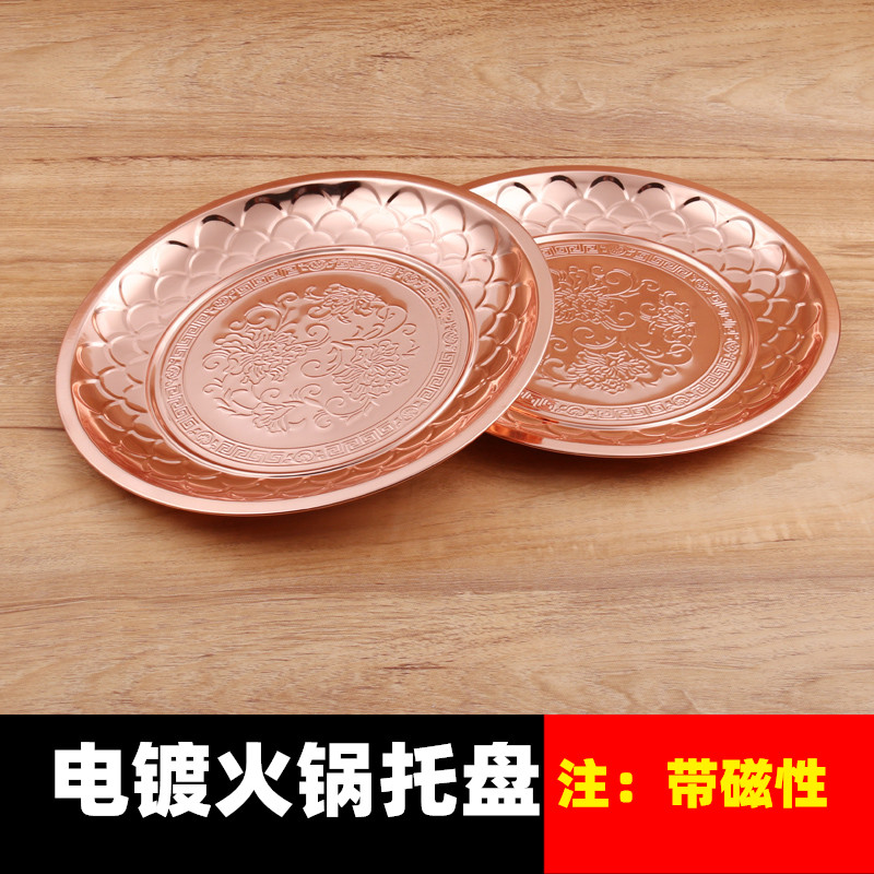 不锈钢底盘铜火锅托盘圆盘老北京铜锅底盘水果盘茶盘镀铜盘子饭店