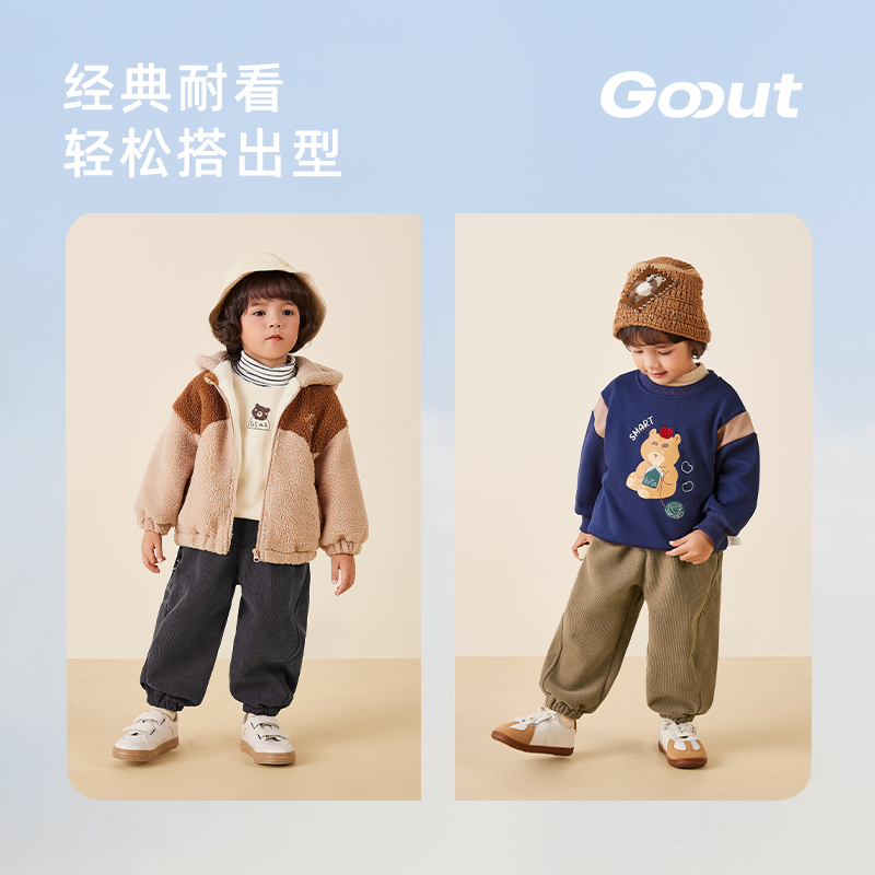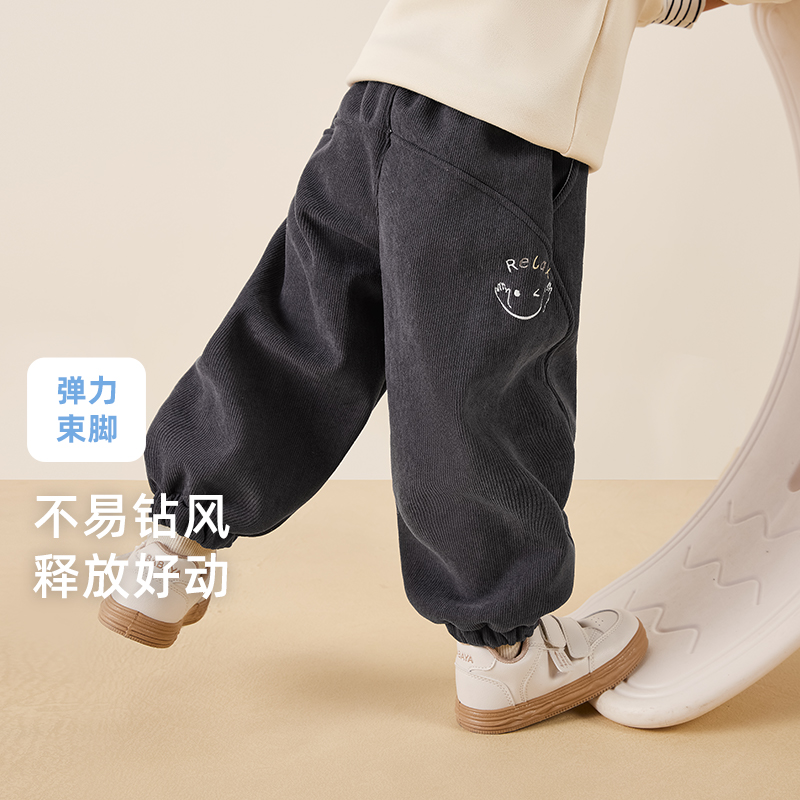 [奥粒绒]儿童休闲裤男童秋冬加绒加厚裤子男宝宝保暖长裤束腿卫裤