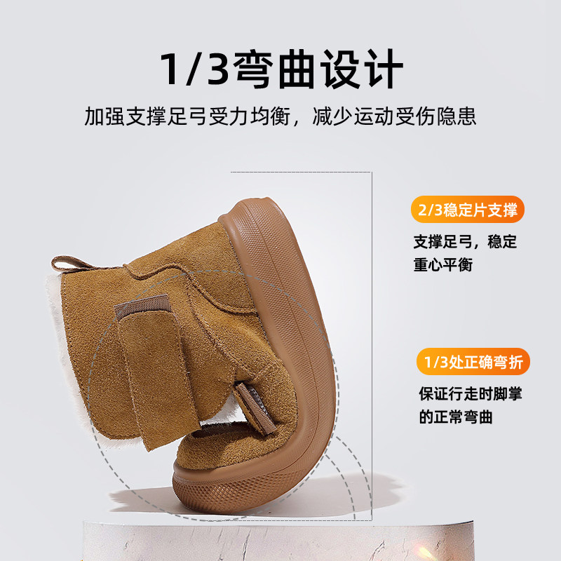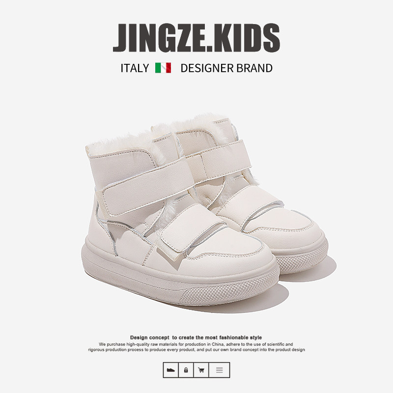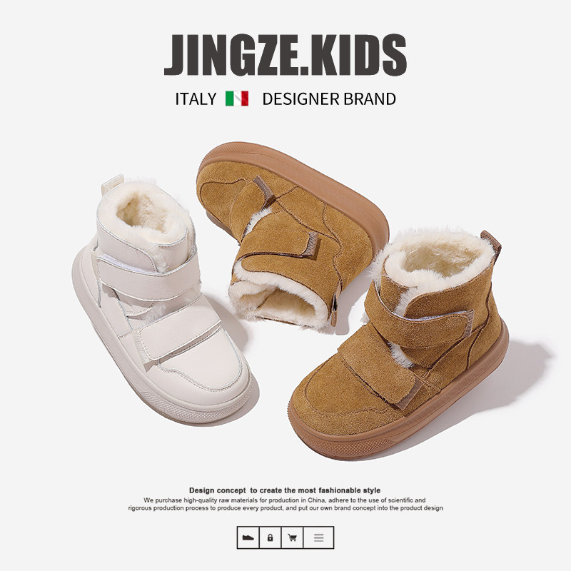 静泽儿童雪地靴冬季新款真皮加绒加厚男童大棉鞋女童保暖防水防滑