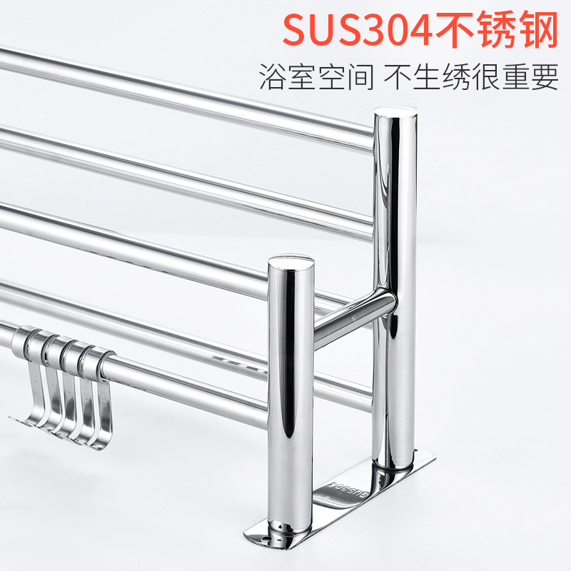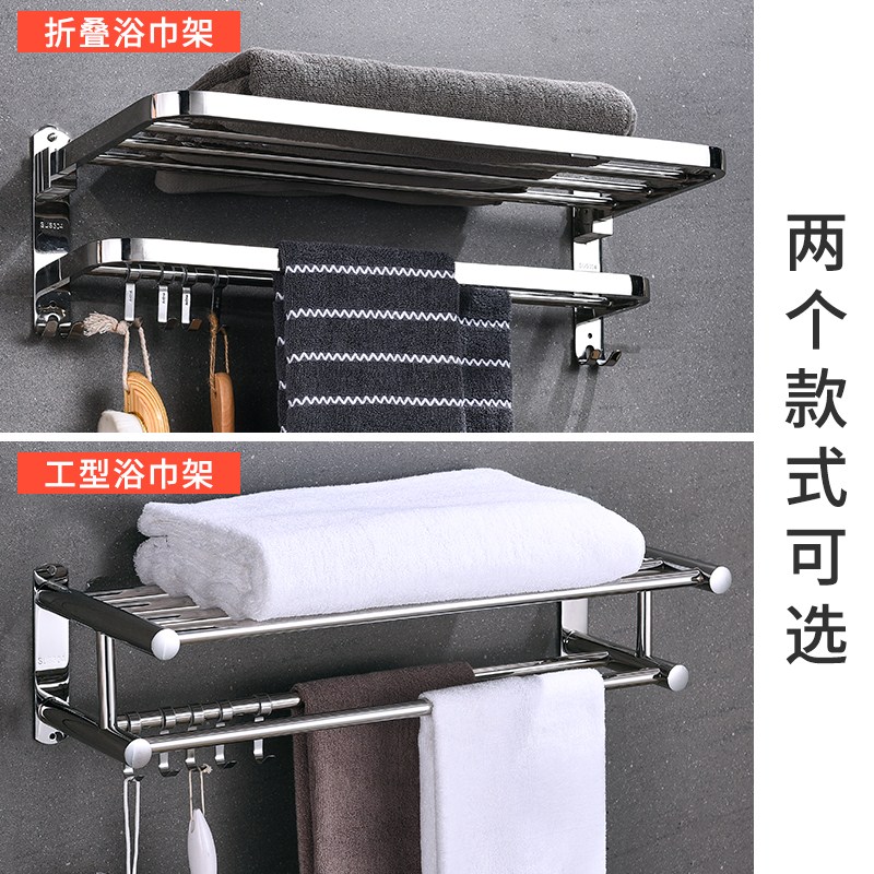 毛巾架免打孔卫生间不锈钢收纳浴巾架浴室挂钩杆厕所置物架壁挂架