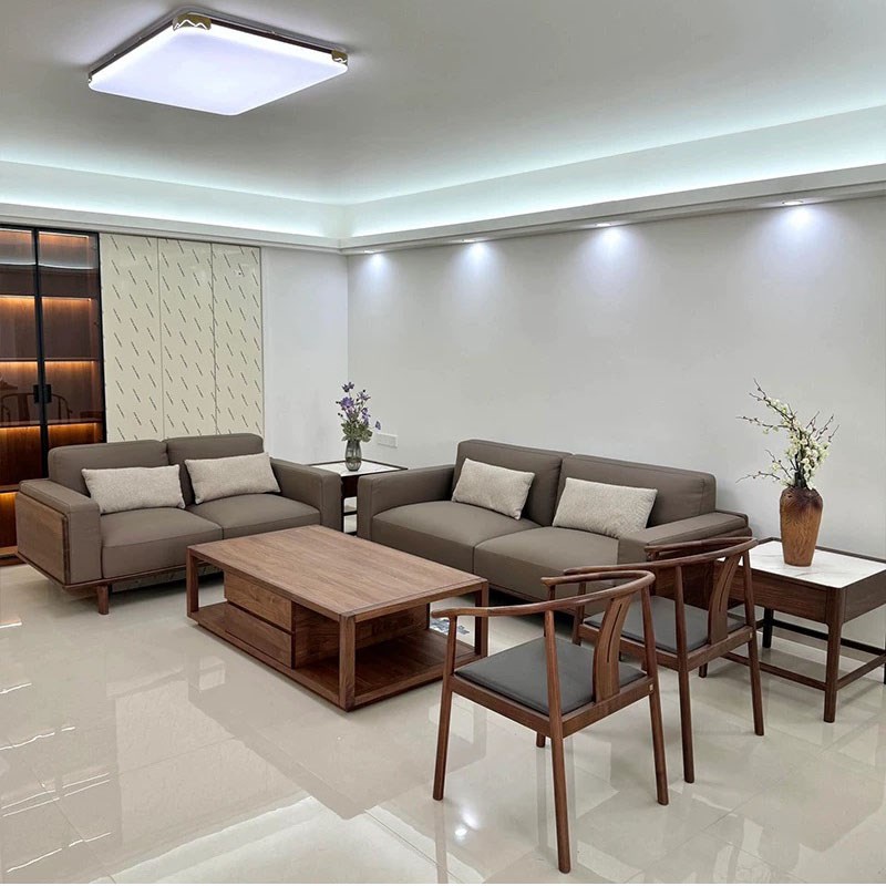 新中式沙发客厅2025新款高端黑胡桃木真皮小户型实木沙发组合别墅