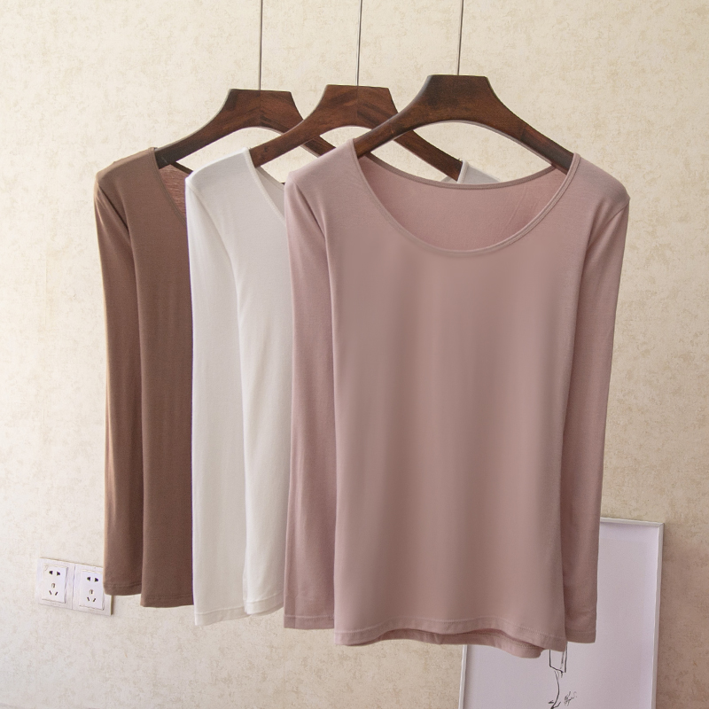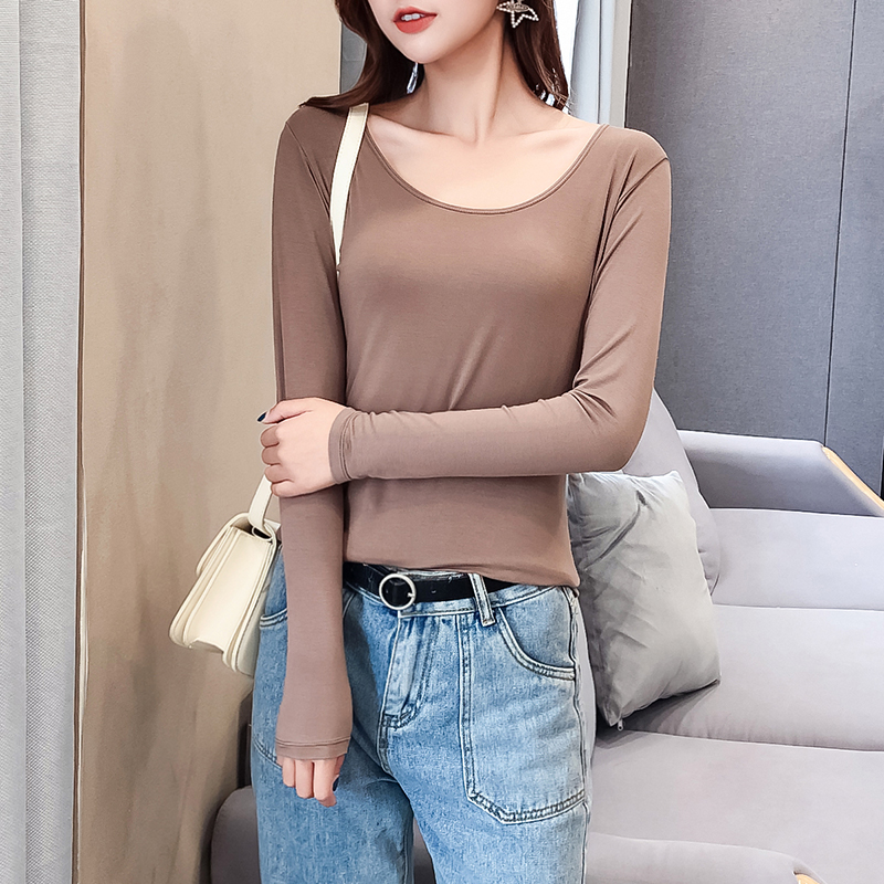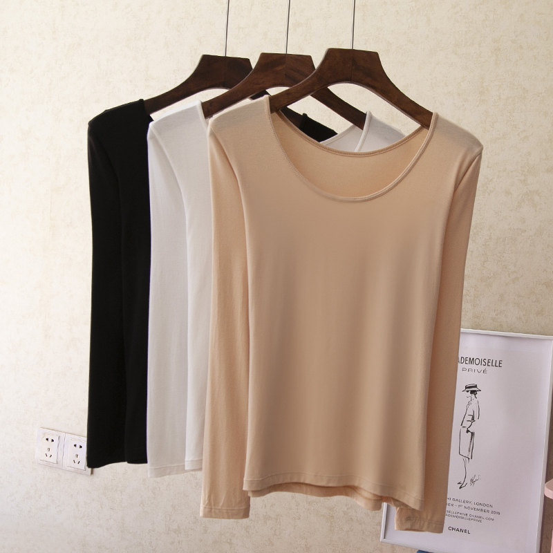 2023莫代尔打底衫女修身大码圆领秋衣女打底长袖黑色内搭薄款t恤