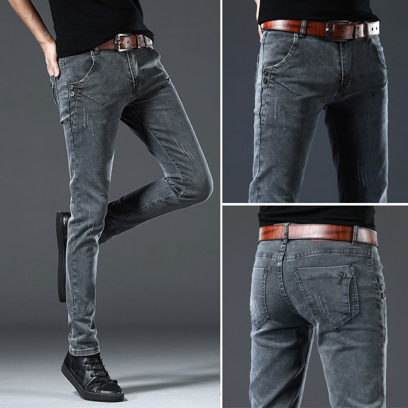 黑灰色复古牛仔裤男冬季潮牌休闲长裤子修身小脚弹力韩版潮流百搭