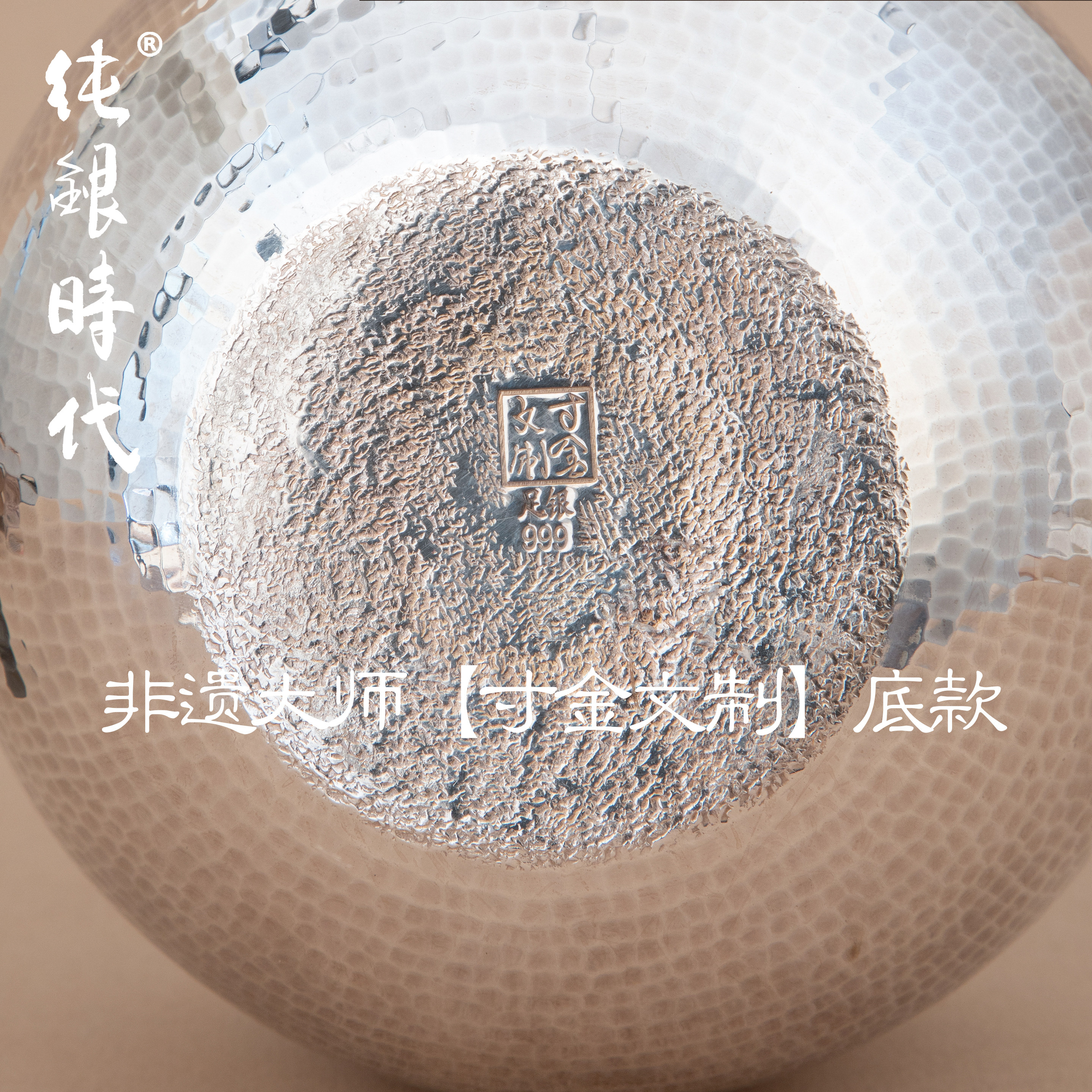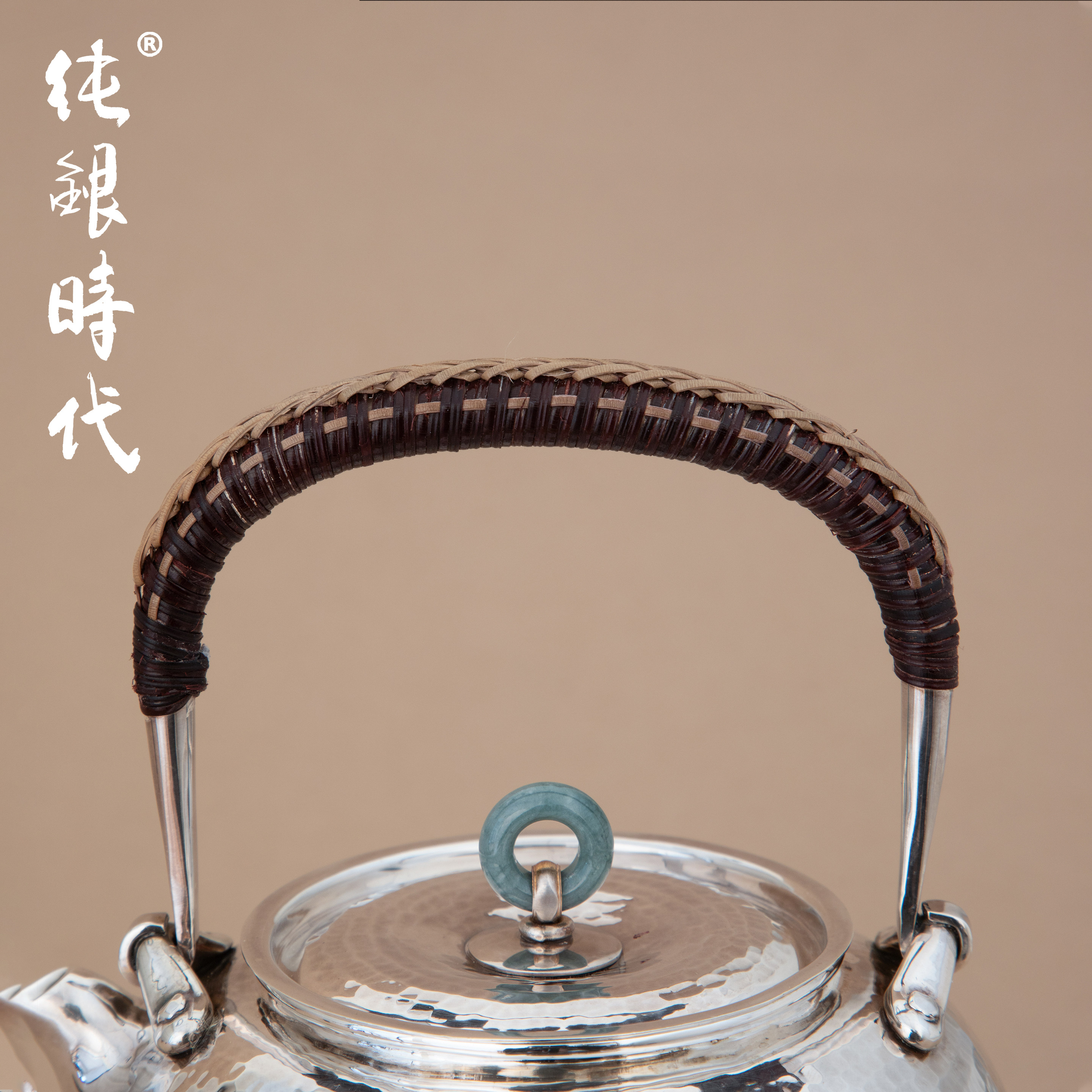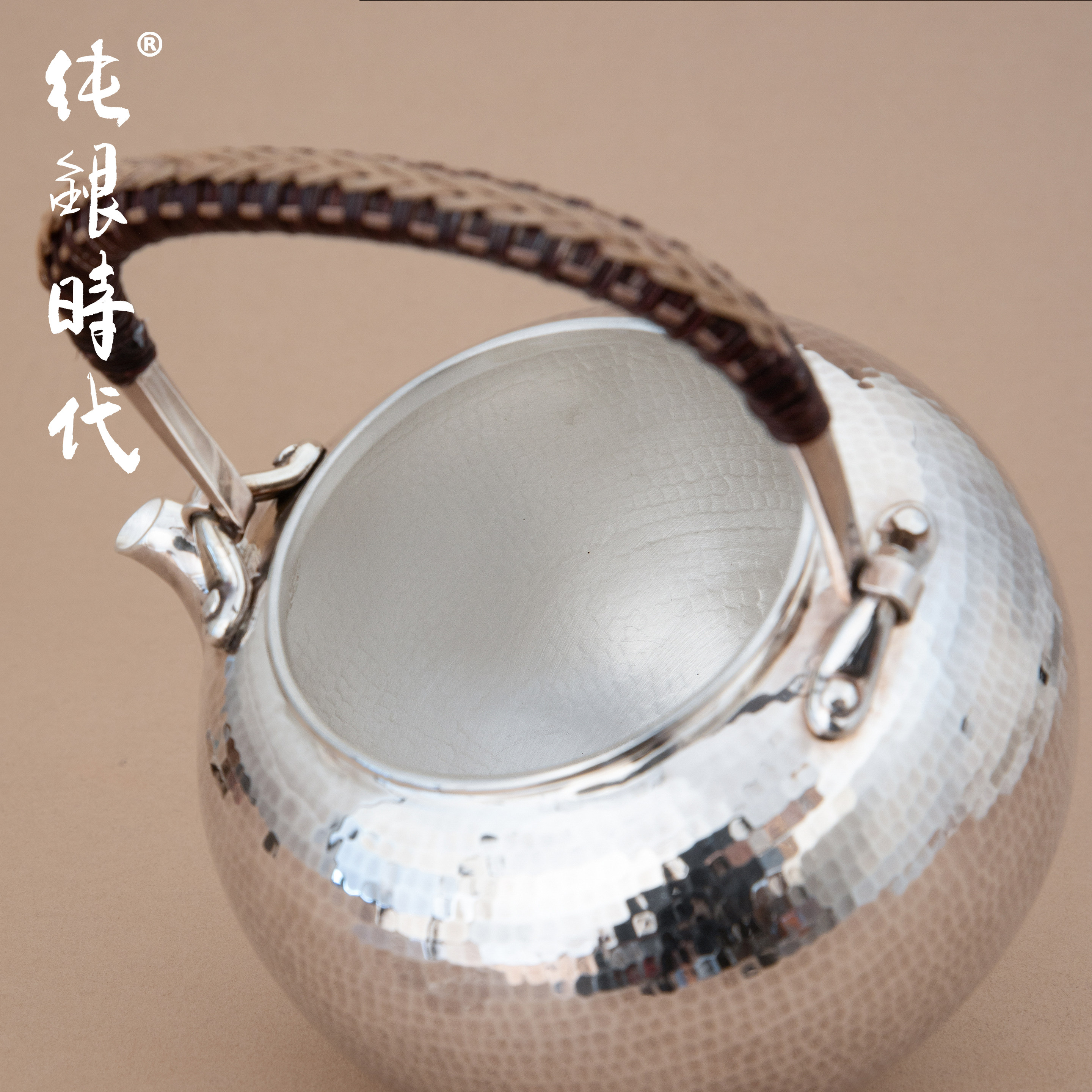 纯银时代 千锤烧水壶纯银999手工锤纹寸金文制一张打银壶600ml