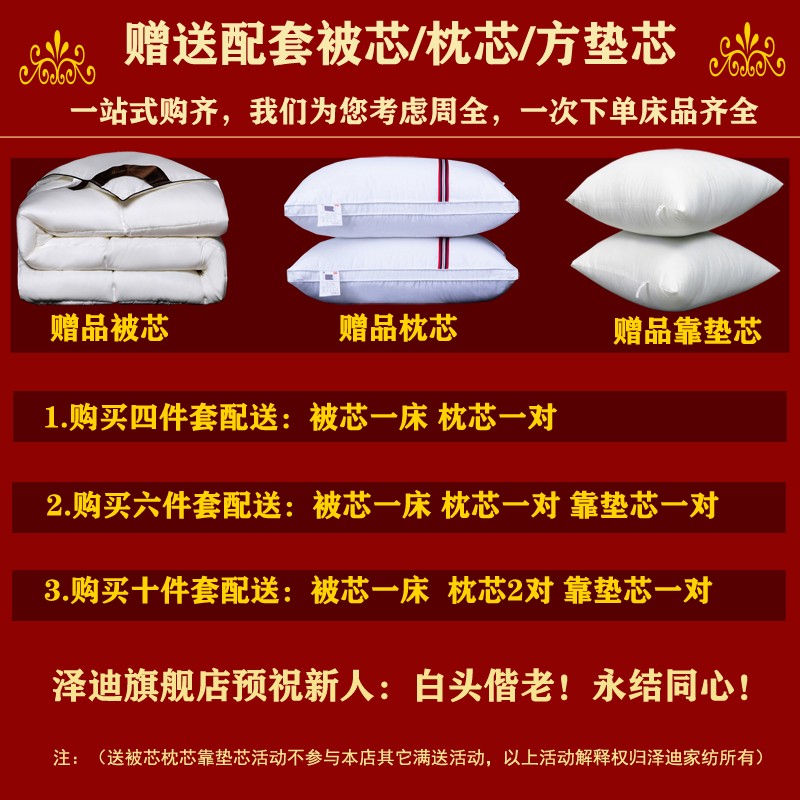 百子图大红色全棉婚礼结婚房四件套婚庆被Q套陪嫁床品六十件套