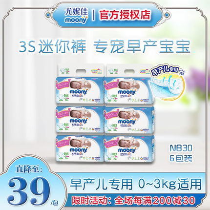 官方尤妮佳moony畅透新生儿纸尿裤3S早产儿NB30片*6包婴儿尿不湿