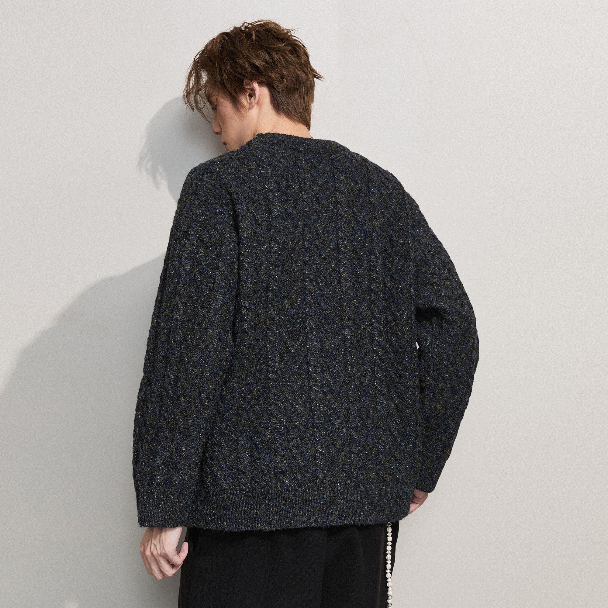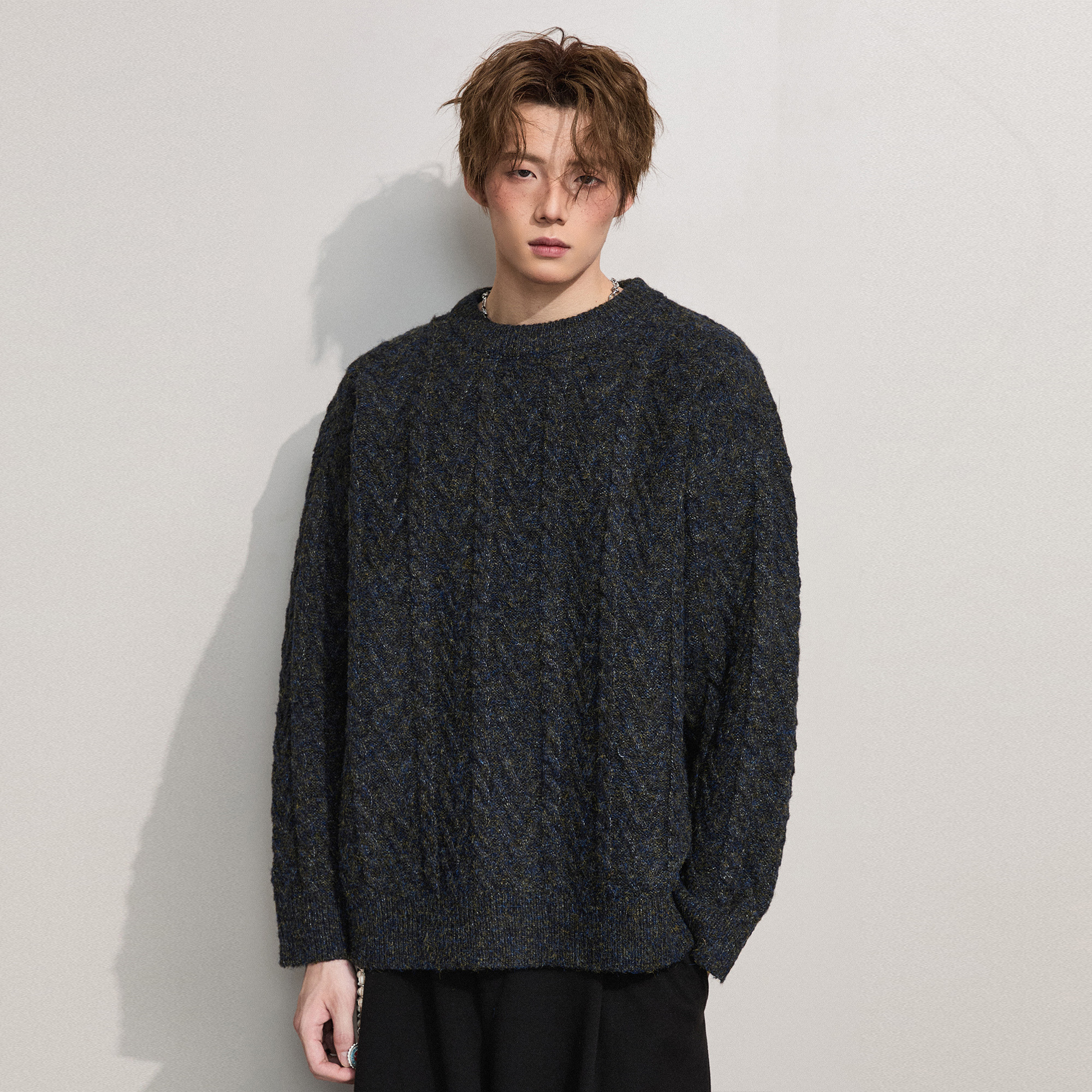 ALLIN 美式复古混色毛衣男秋冬季情侣加厚保暖圆领套头打底针织衫