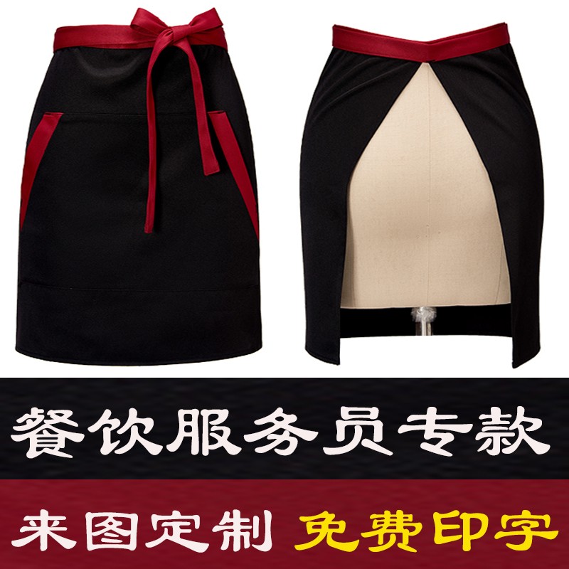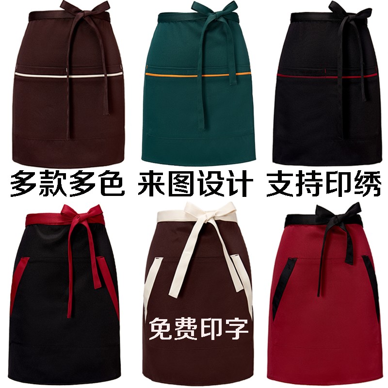 服务员半身围裙短款酒店餐厅饭店厨房防油半截围腰男女工作服印字
