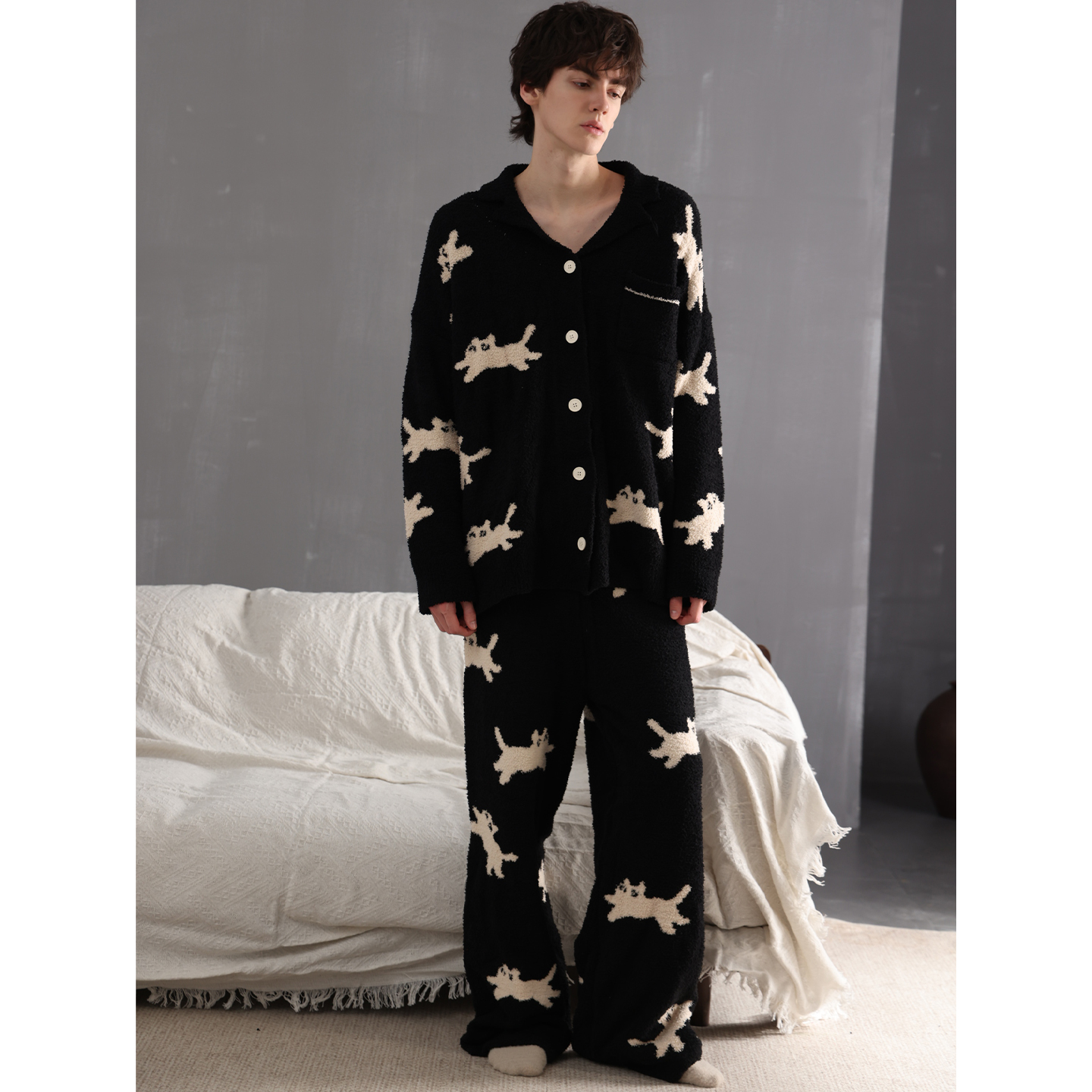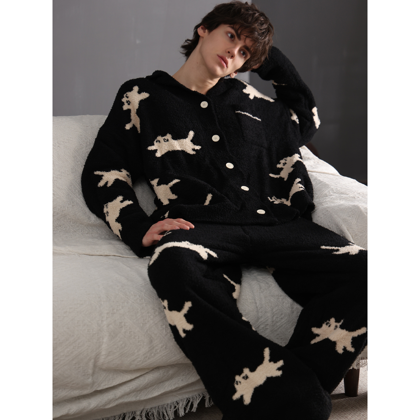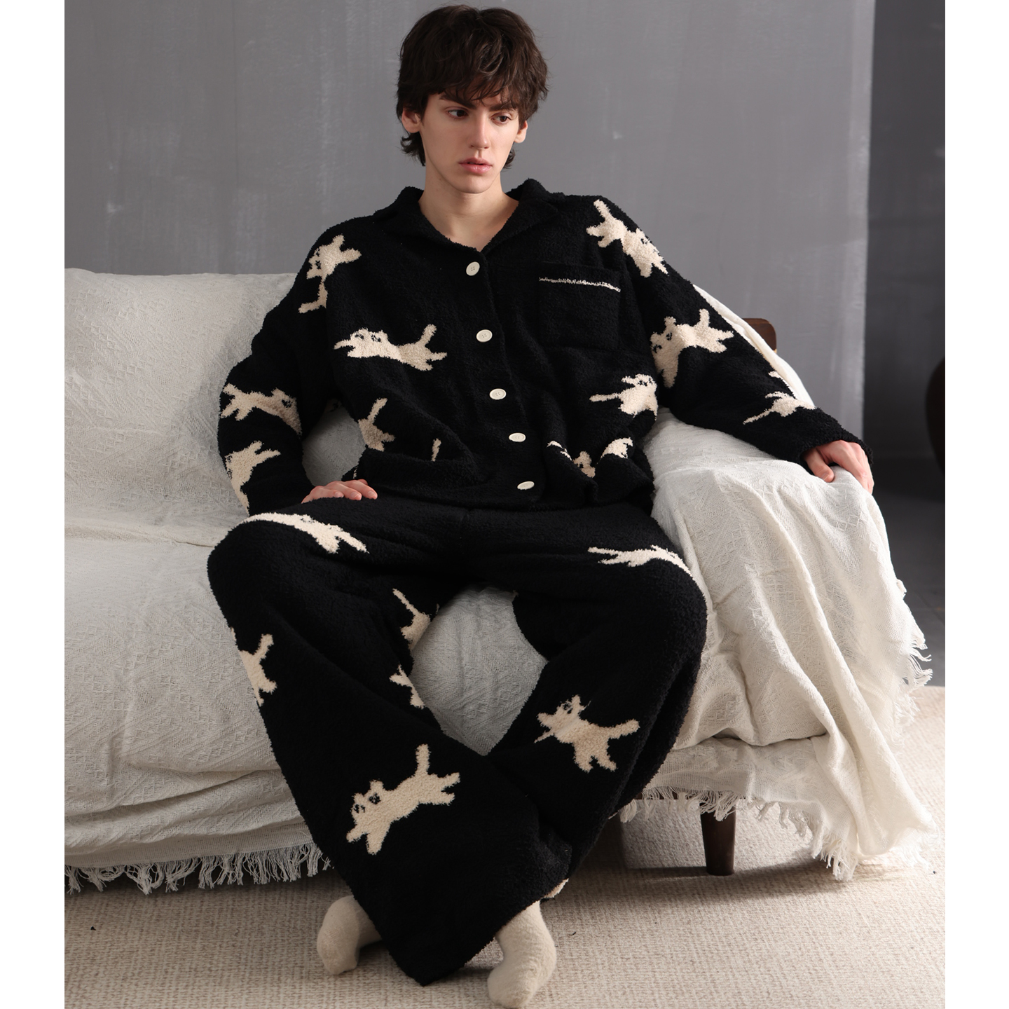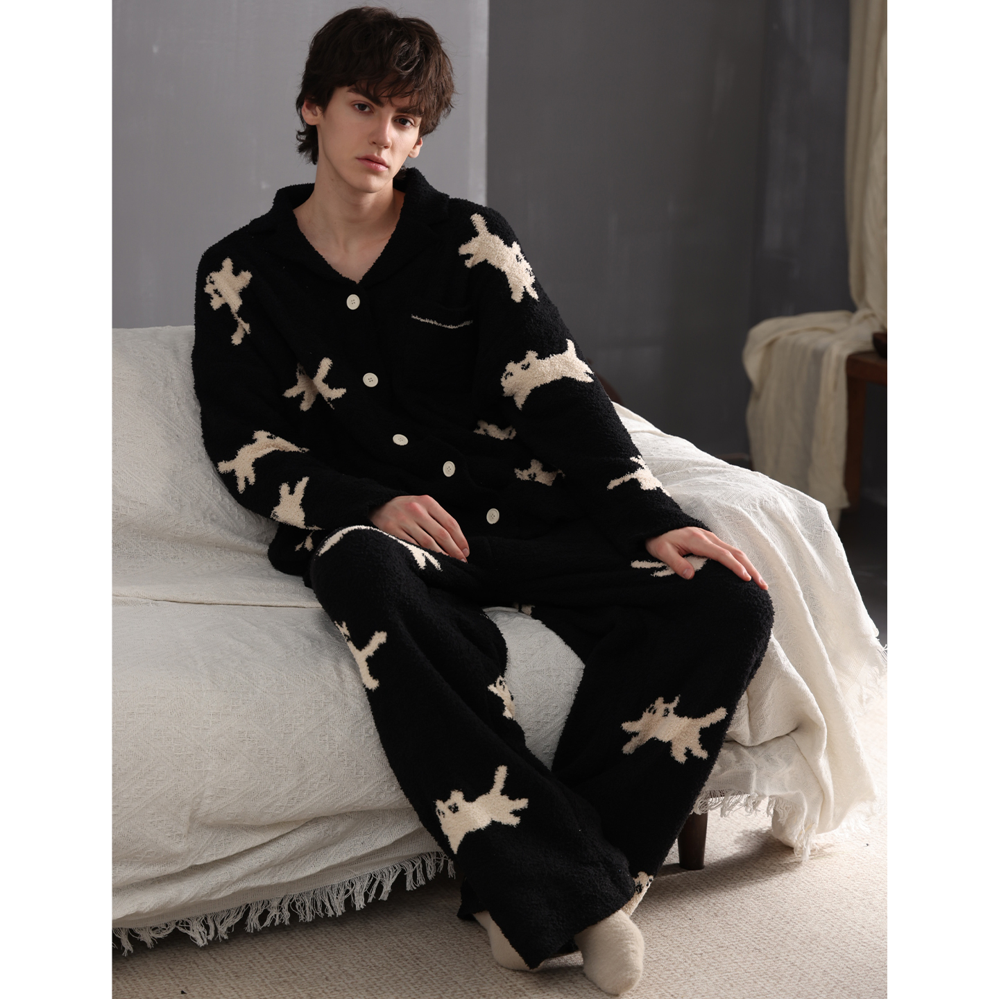 猫人半边绒睡衣男士秋冬季2025新款珊瑚绒加厚加绒可外穿家居服