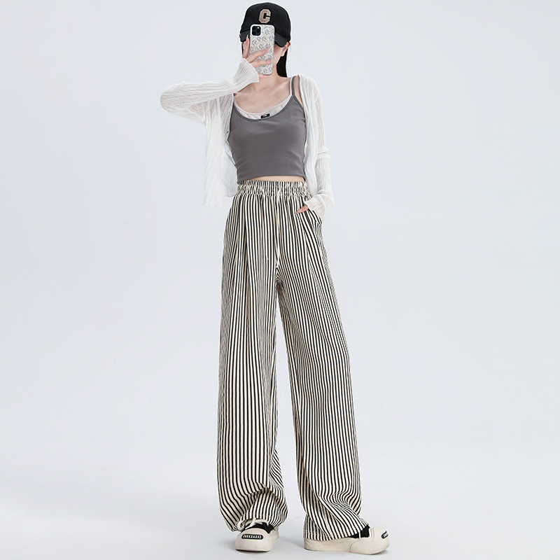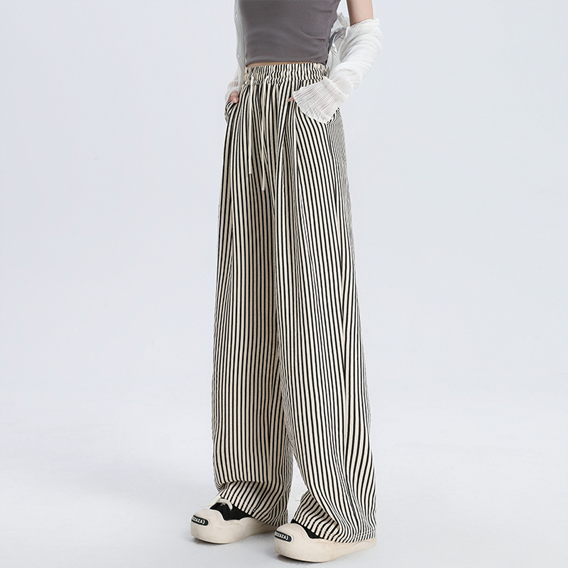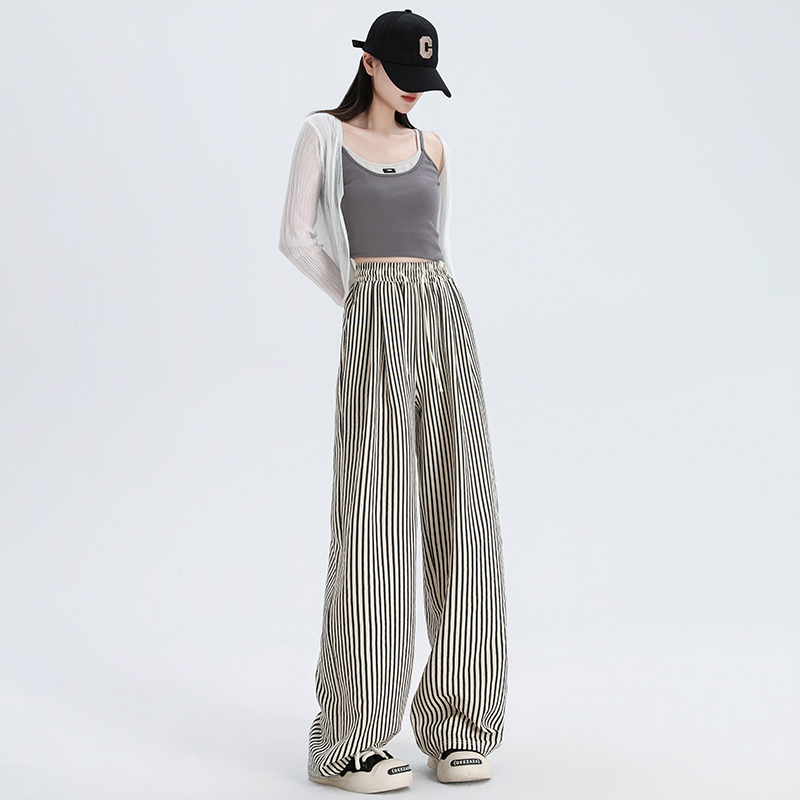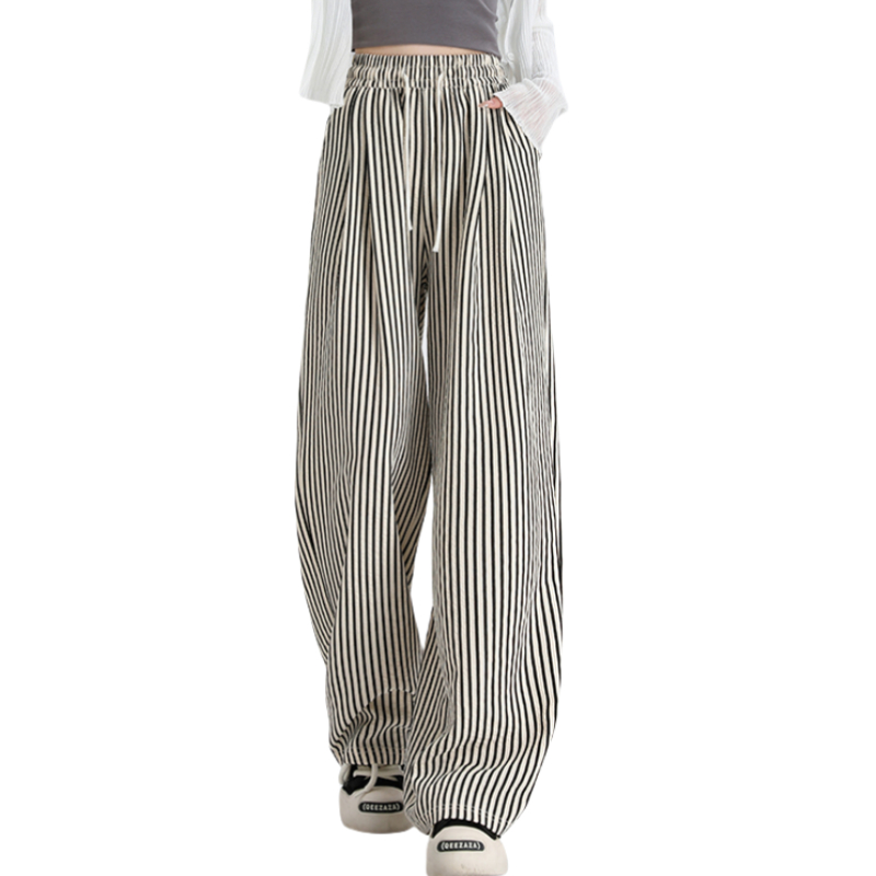 VF真维斯女装2025夏季新款 黑白条纹小个子高腰宽松休闲裤女