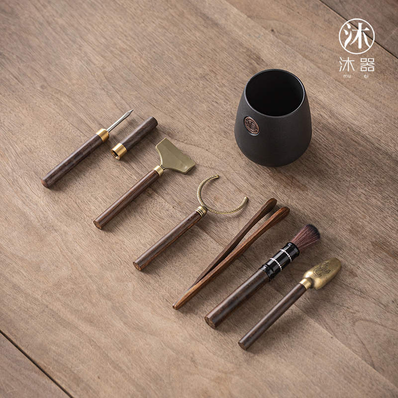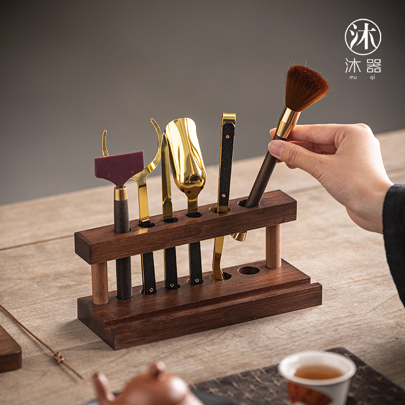 茶道六君子6件套装功夫茶具配件用品实木收纳架泡茶茶夹普洱茶刀
