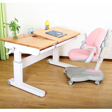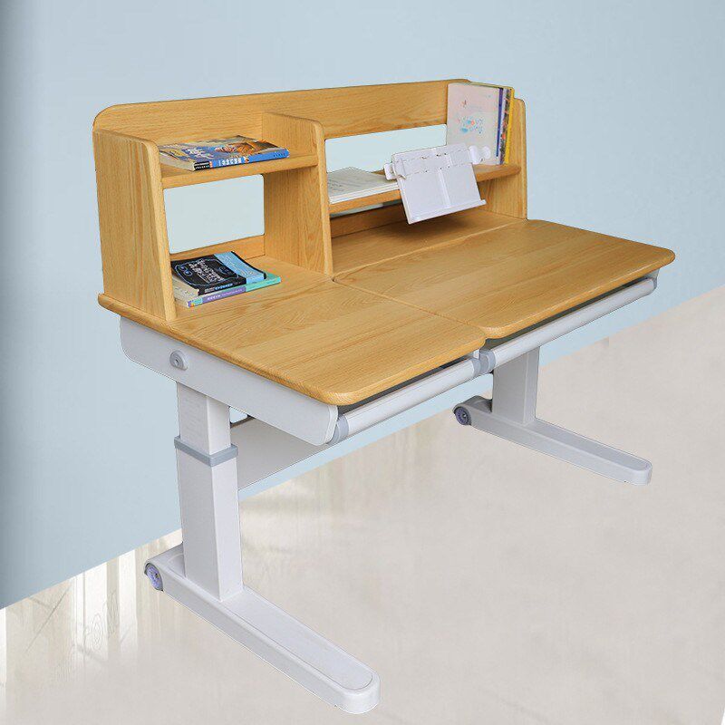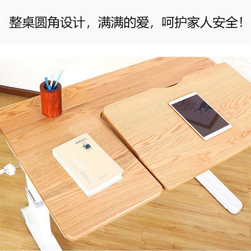 速发红橡木书房高低可升降木实书桌小儿中幼学生家用写字桌儿童学