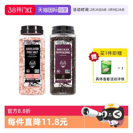 【自营】SOEOS玫瑰盐黑胡椒组合天然无添加进口研磨大颗粒补充装