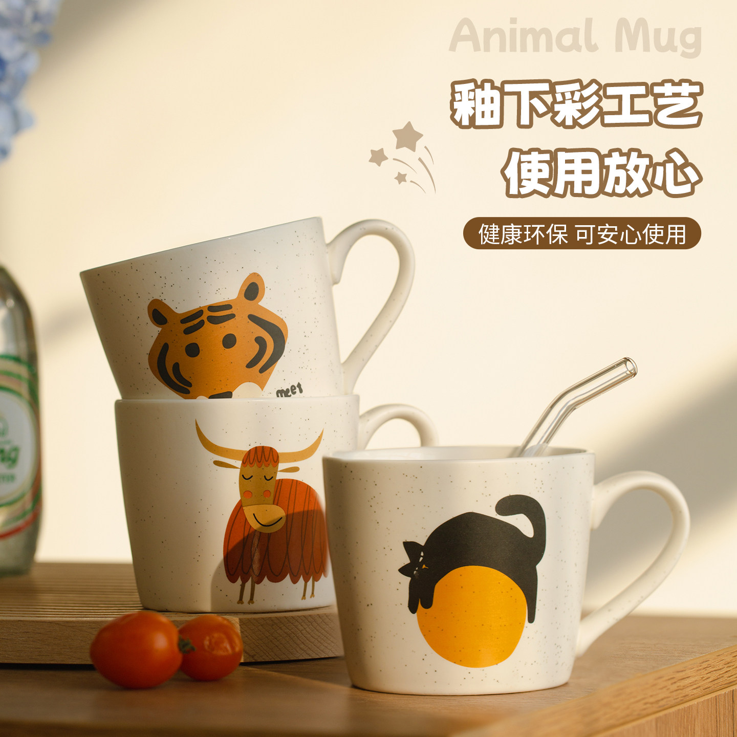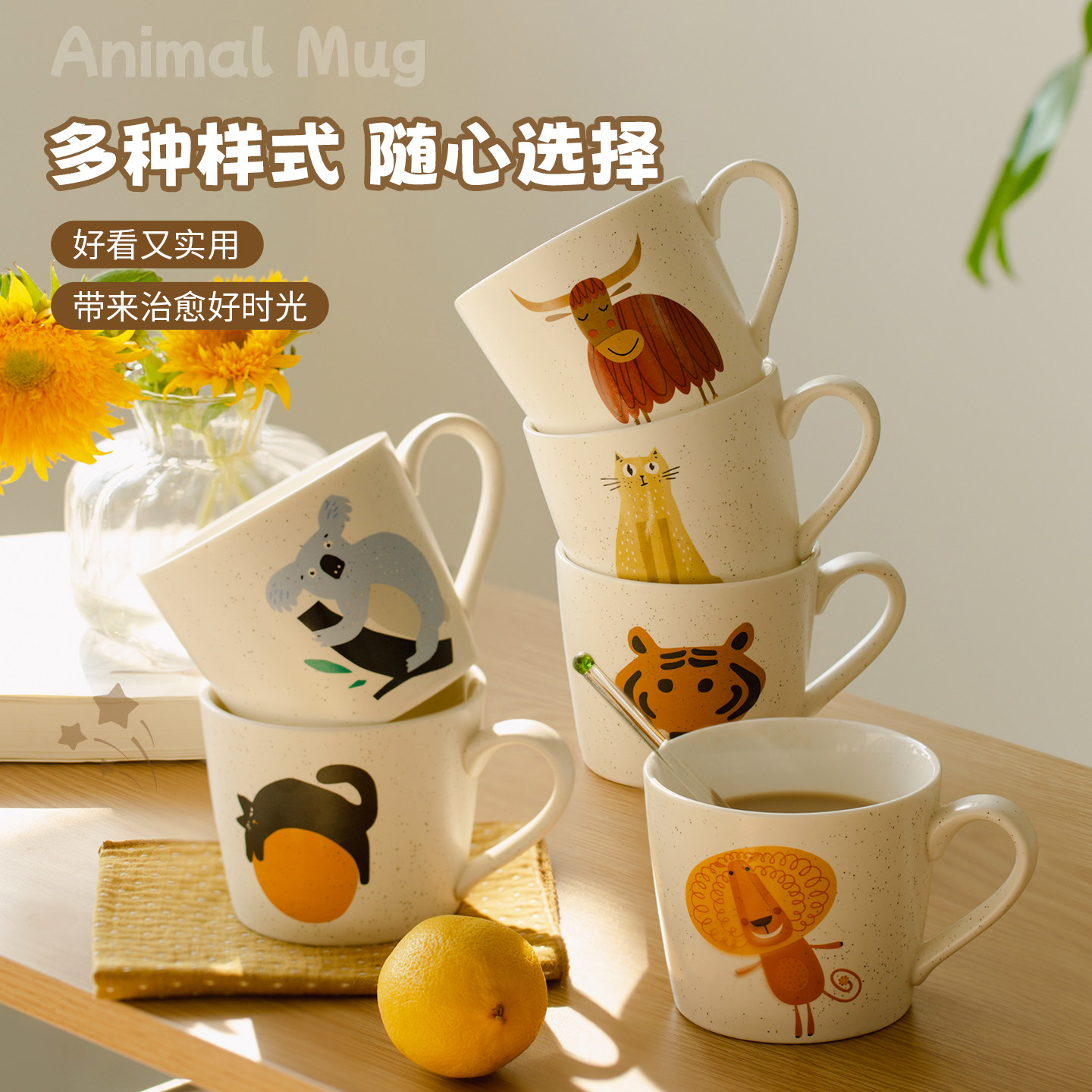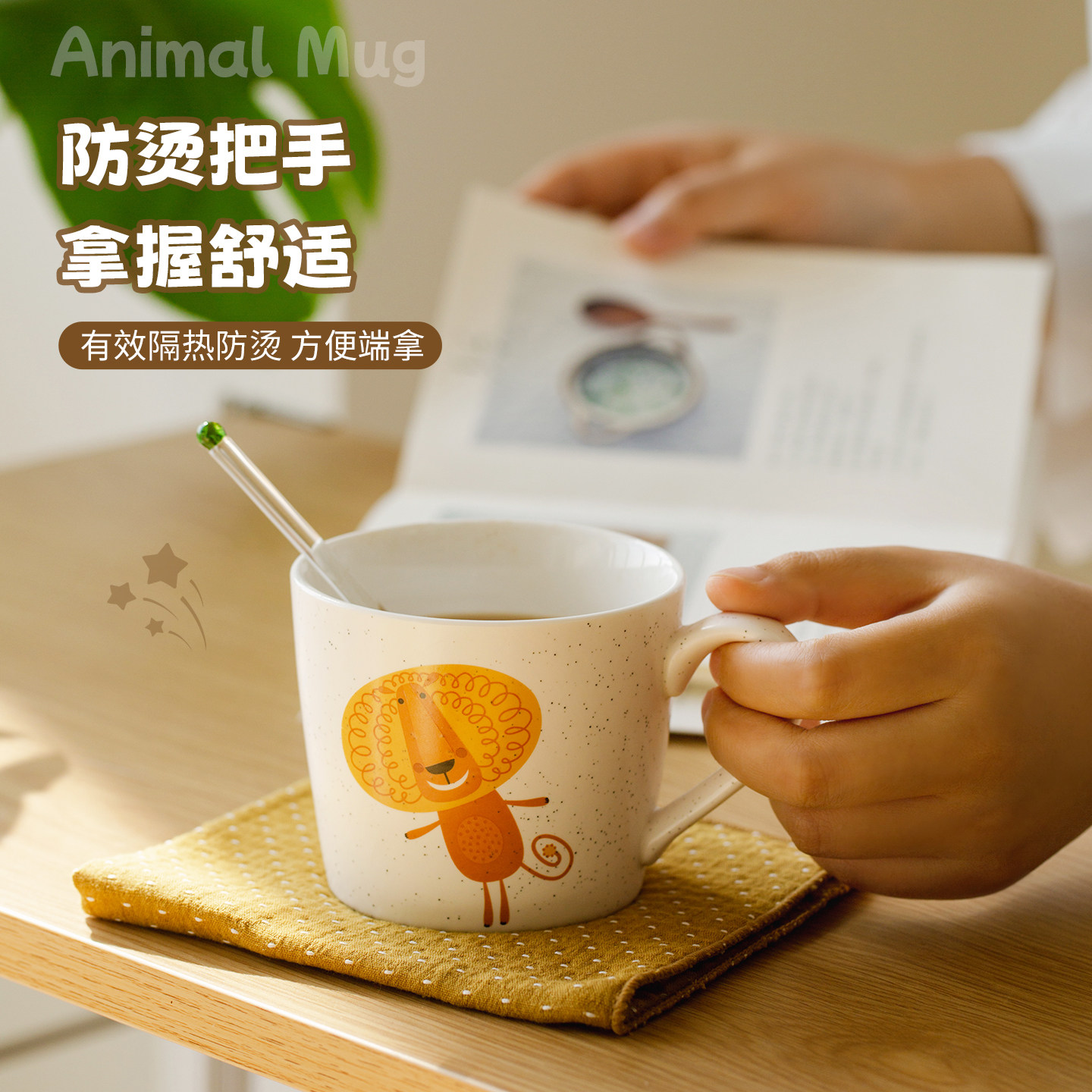 肆月动物创意可爱马克杯咖啡杯家用喝水陶瓷杯情侣水杯儿童杯子