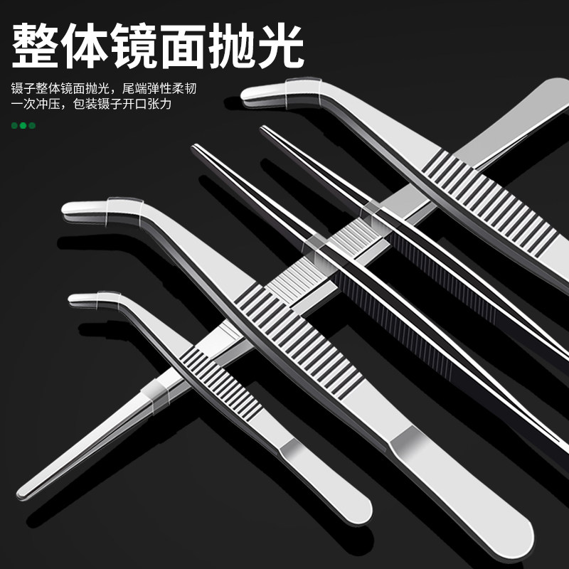 保联304不锈钢镊子加厚圆弯头敷料镊子鱼缸水草聂子工具维修夹子